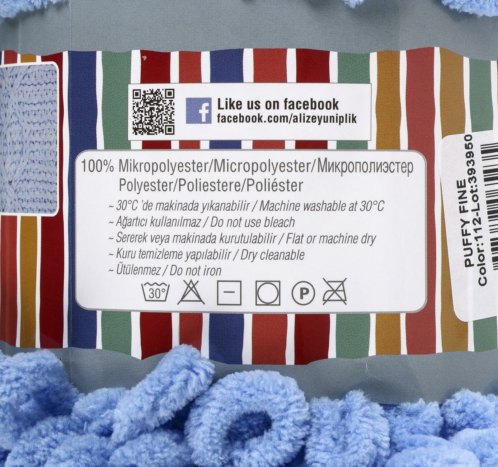 Пряжа для вязания плюшевая Alize Puffy Fine, цвет 112 голубой, 100г, 14,5м, 5 шт/упак