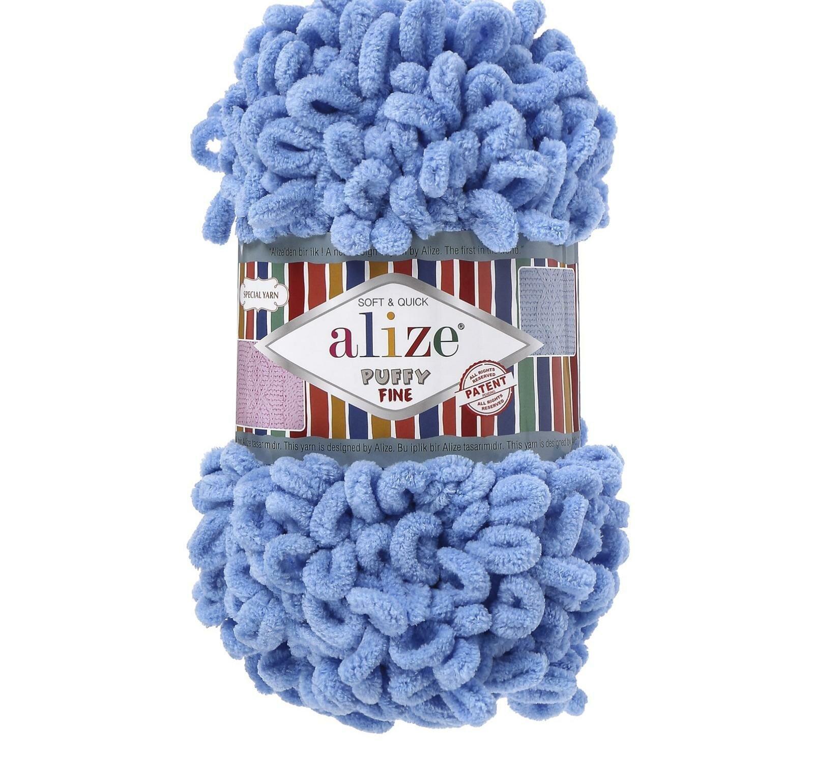 Пряжа Alize Puffy Fine -1 шт, 414 лазурный, 14 м/100 г, маленькие петли (2 см) /Ализе Пуффи файн/