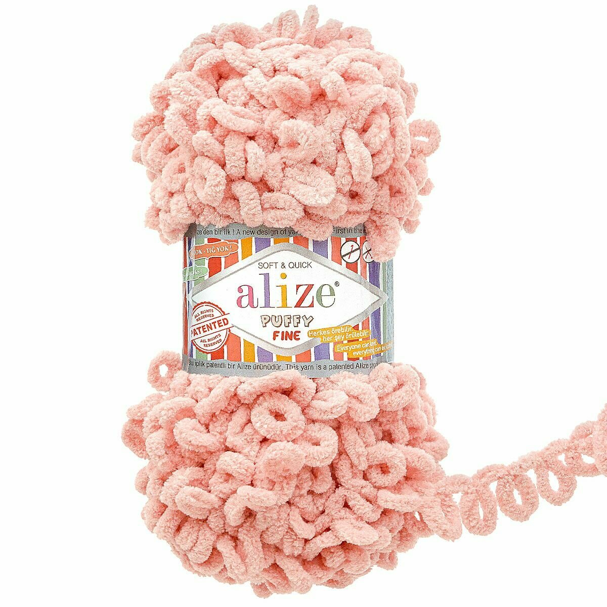 Пряжа Alize Puffy Fine (100% микрополиэстер) 100 гр, 14.5 м, 340 светло-розовый , 1 моток