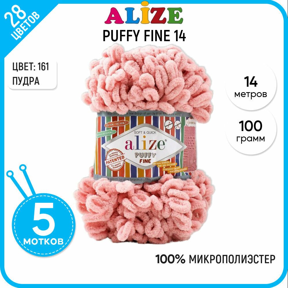 Пряжа для вязания Alize Puffy Fine 161 пудра, 100 г, 14 м, 5 штук