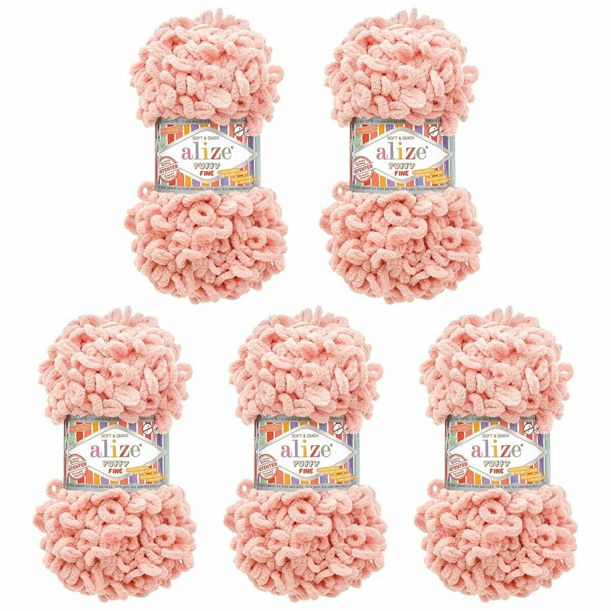 Пряжа для вязания плюшевая Alize Puffy Fine, цвет 340 светло-розовый 100г, 14,5м, 5 шт/упак