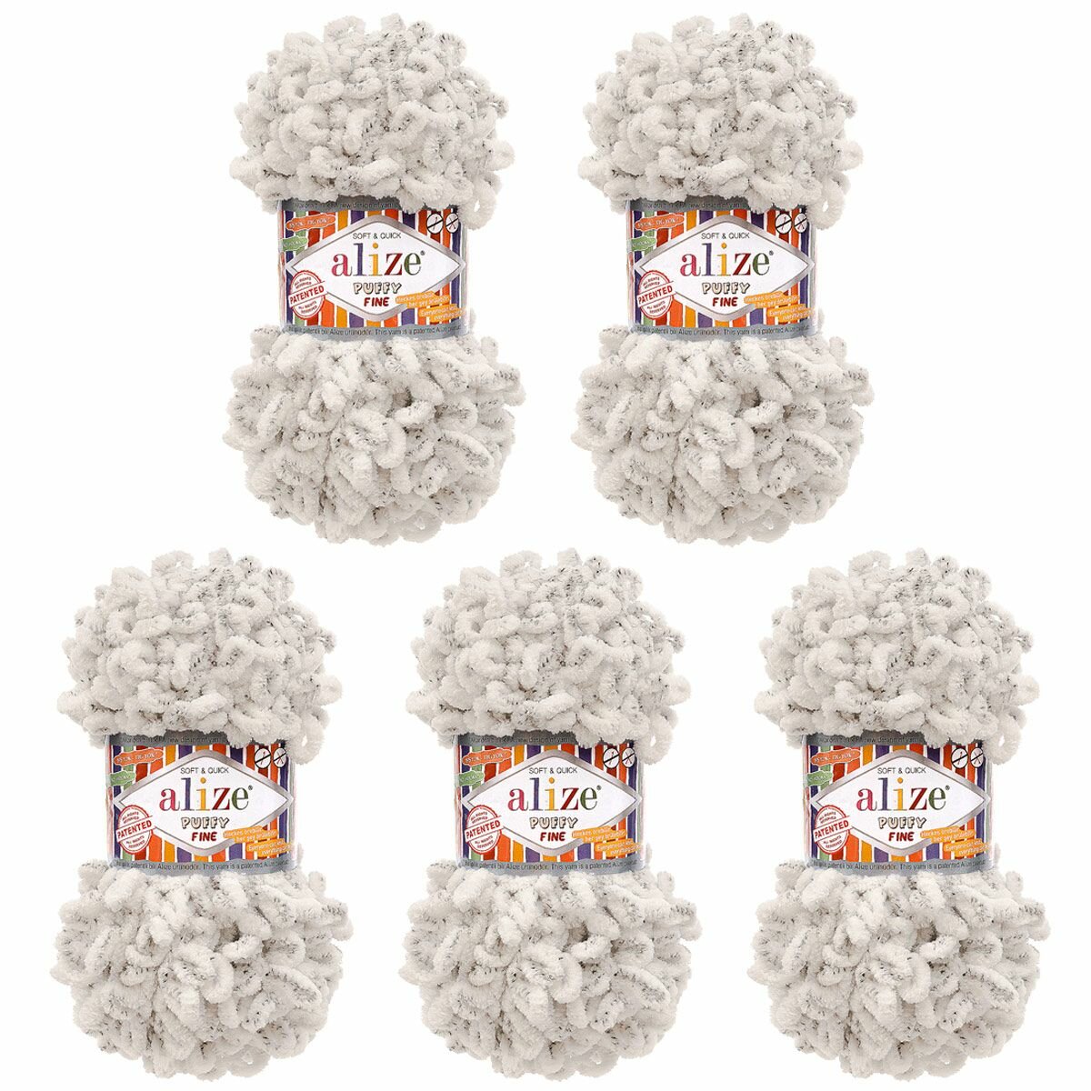 Пряжа Alize Puffy Fine (55 белый), 5 шт. по 100 г, Alize