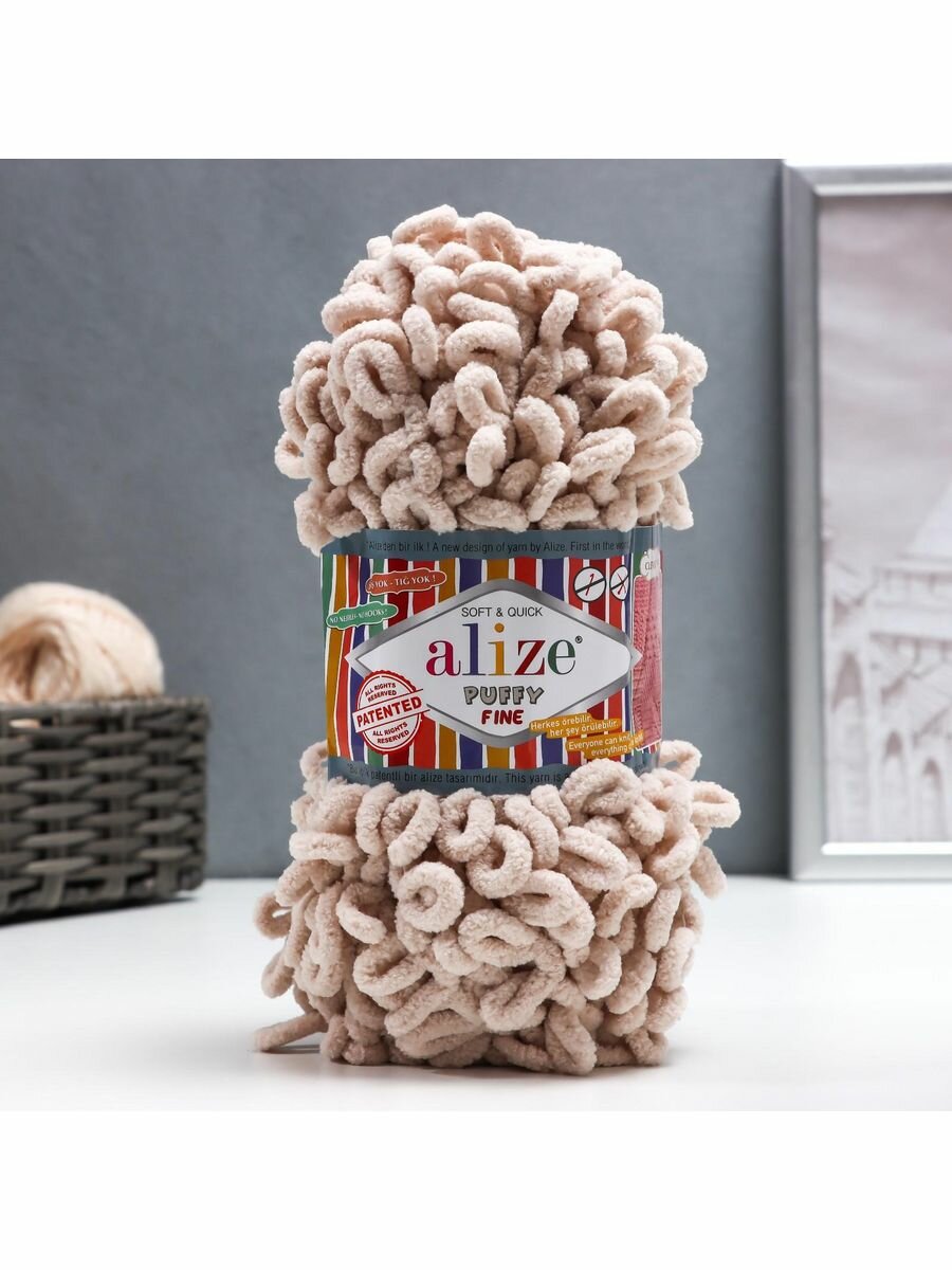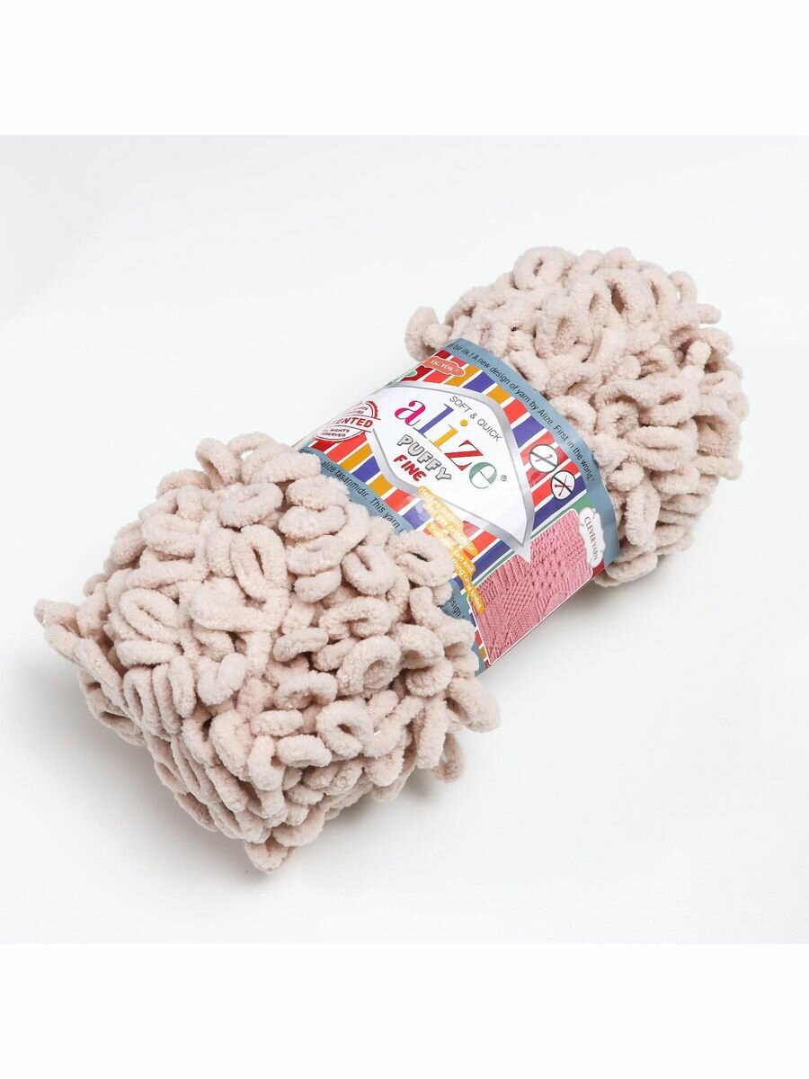 Пряжа плюшевая Alize Puffy Fine (Пуффи Файн) - 5 мотков 310 шампань, для вязания рукми, маленькие петельки (2см), 100г 14м