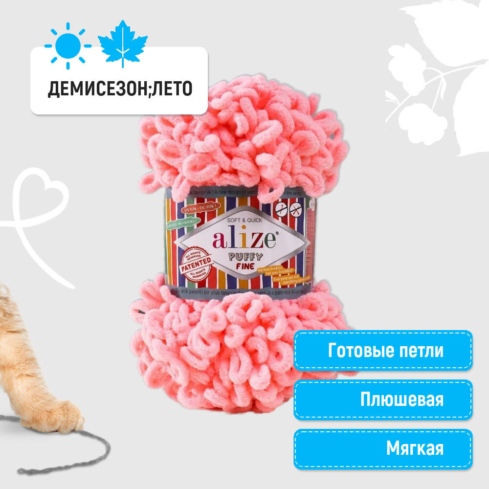 СохранитьПряжа Alize Puffy fine розовый (638), 100%микрополиэстер, 14.5м, 100г, 5шт интересное: