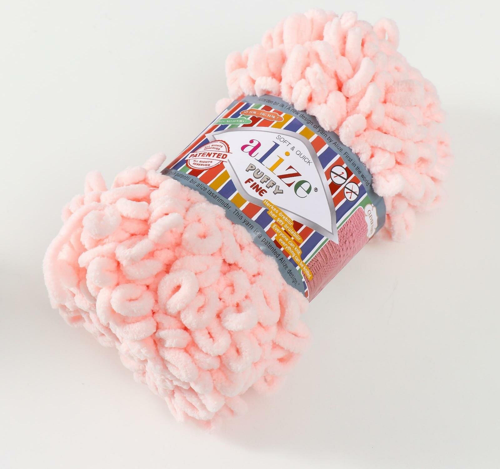 Пряжа для вязания руками с готовыми петлями ALIZE 'Puffy Fine' 100г, 14,5м (340 светло-розовый), 5 мотков