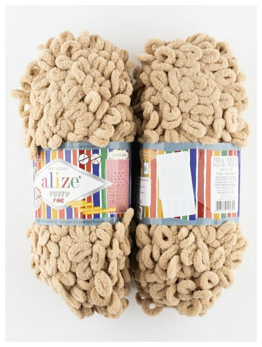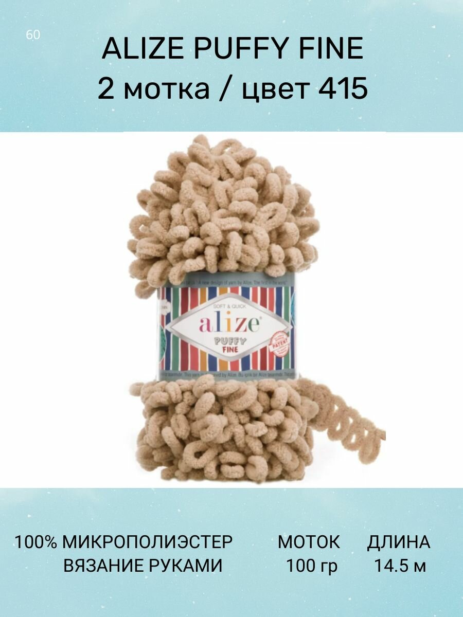 Купить Пряжа Alize Puffy fine песочный (415), 100%микрополиэстер, 14.5м, 100г, 2шт