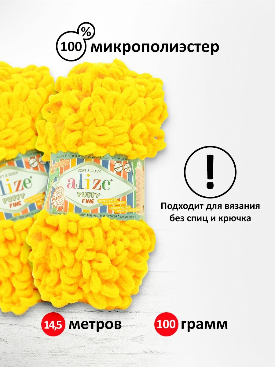 Купить Пряжа для вязания руками с петлями ALIZE 'Puffy Fine' 100г, 14,5м (82 желтый), 5 мотков