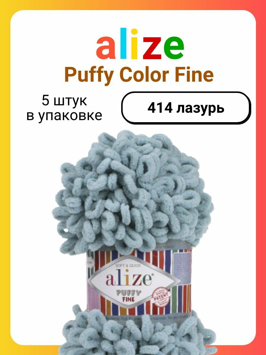 Пряжа для вязания плюшевая с петельками Alize Puffy Fine, цвет 414 лазурный, 100г, 14,5м, 5 шт/упак