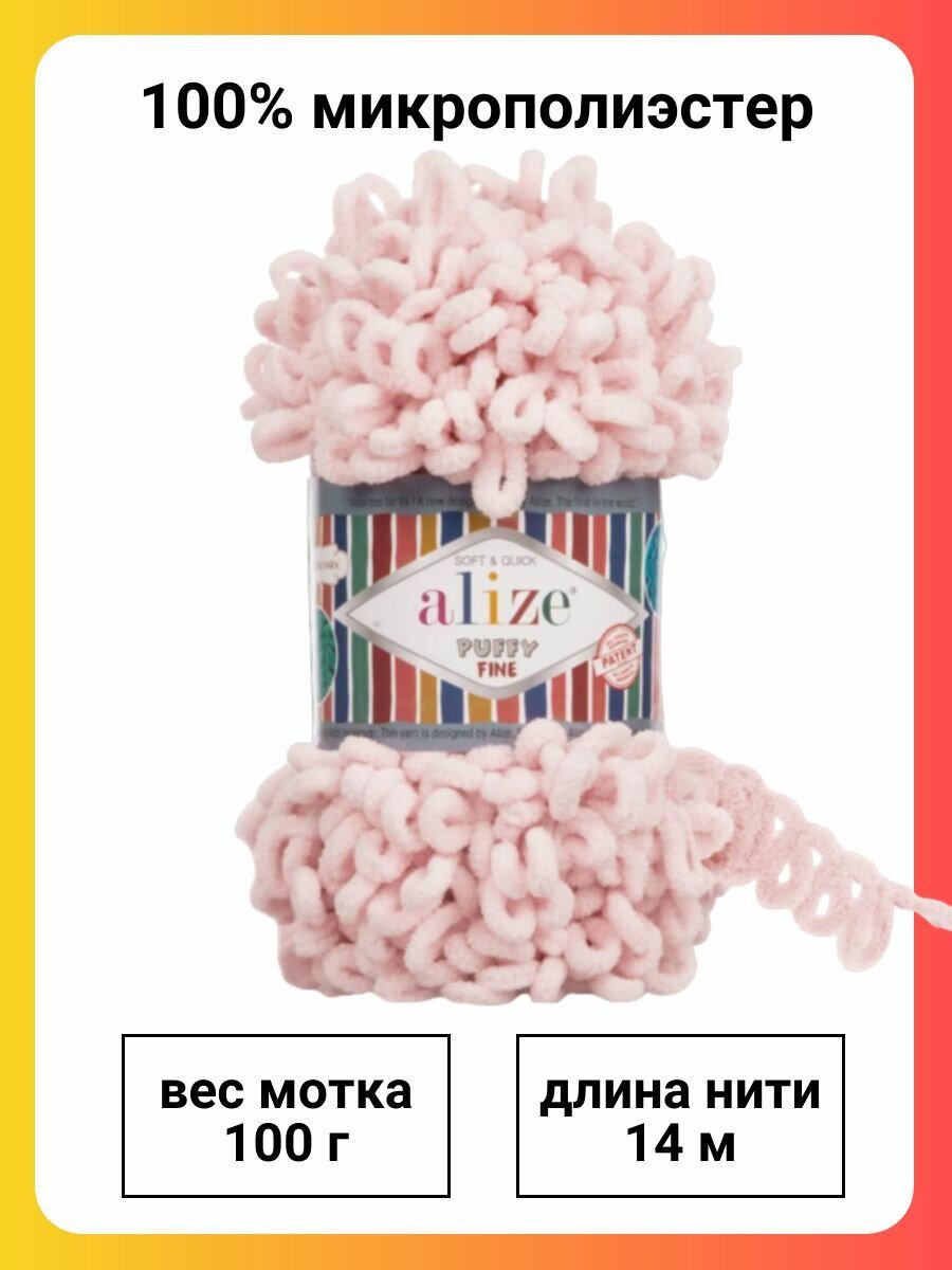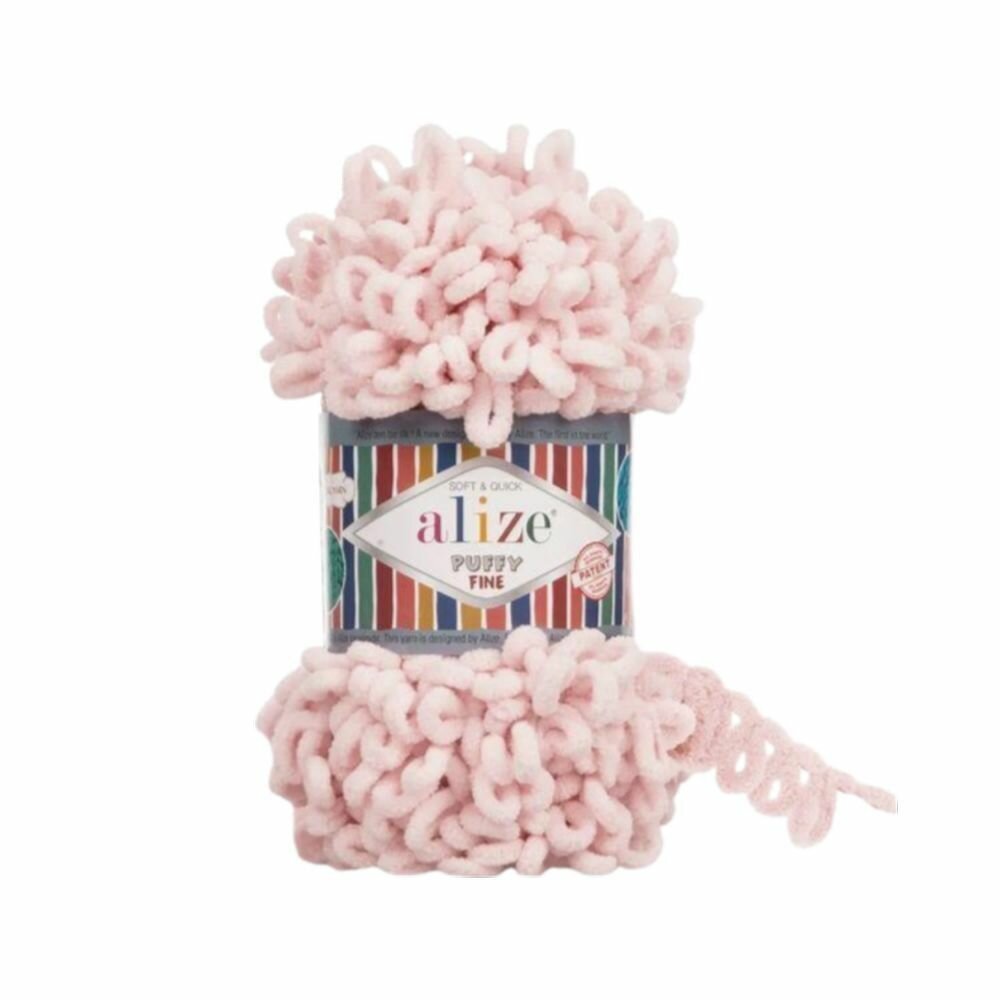 Пряжа для вязания плюшевая Alize Puffy Fine, цвет 340 светло-розовый 100г, 14,5м, 5 шт/упак