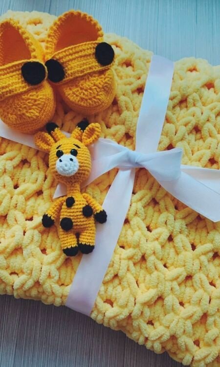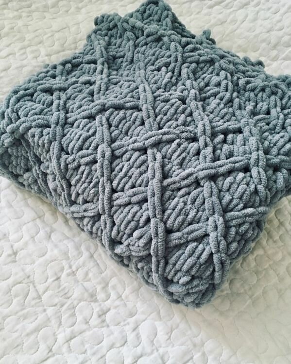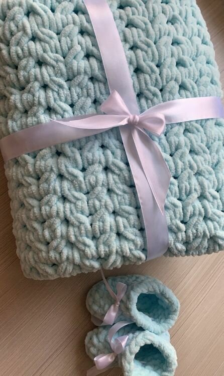 | Дополнительная информация | высота петли 2 см; в 1 метре пряжи примерно 70 петелек; сколько мотков пряжи Pyffy Fine нужно на плед: плед 1 м x1 м — 5 мотков; плед 1,5 м x1,5 м — 11 мотков; плед 1,5 м x 2 м — 15 мотков; плед 2 м x 2 м — 20 мотков |