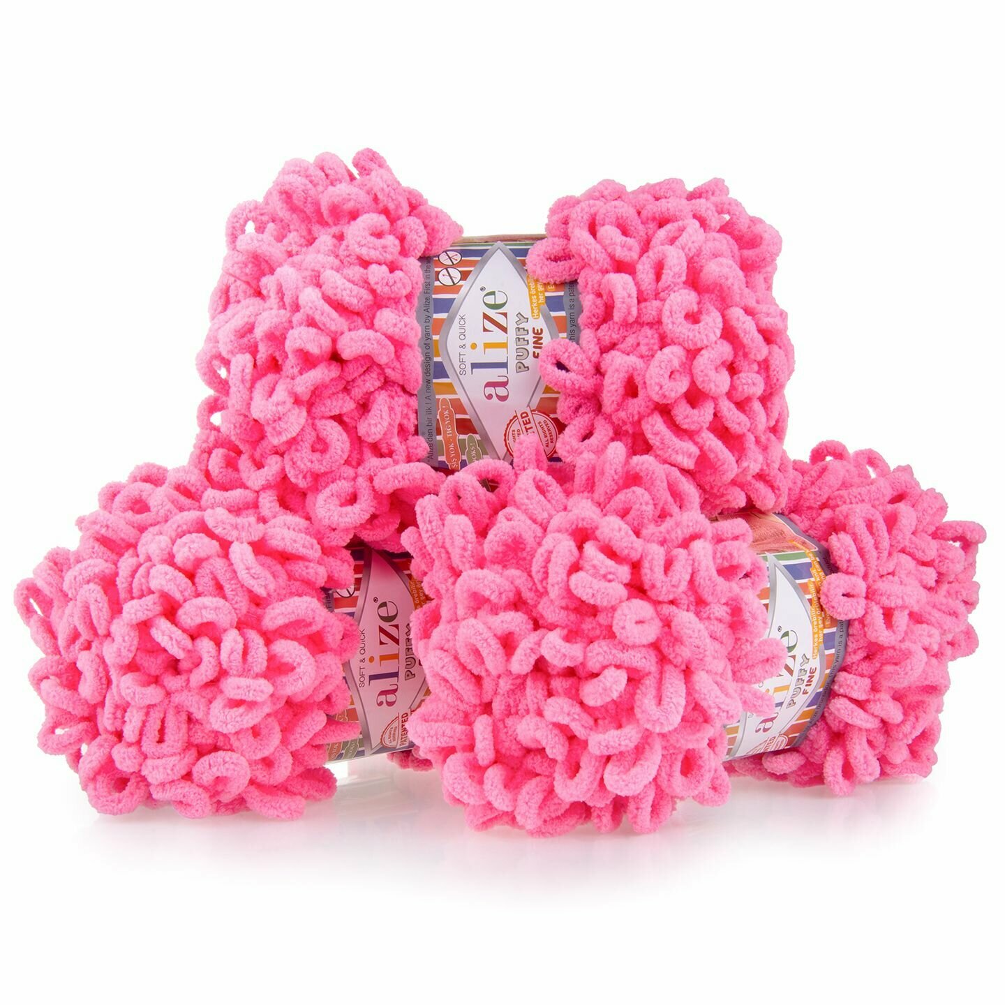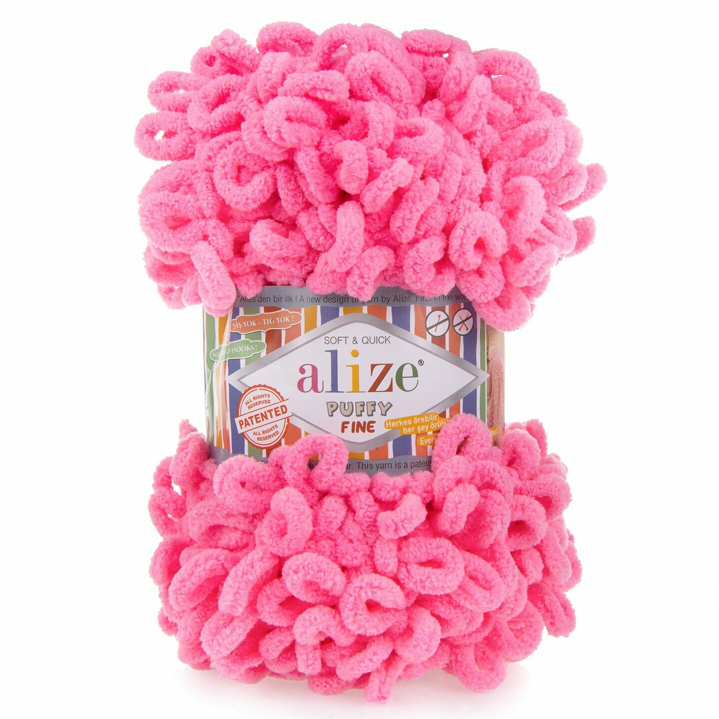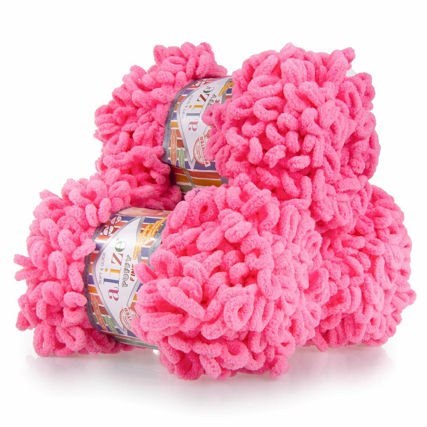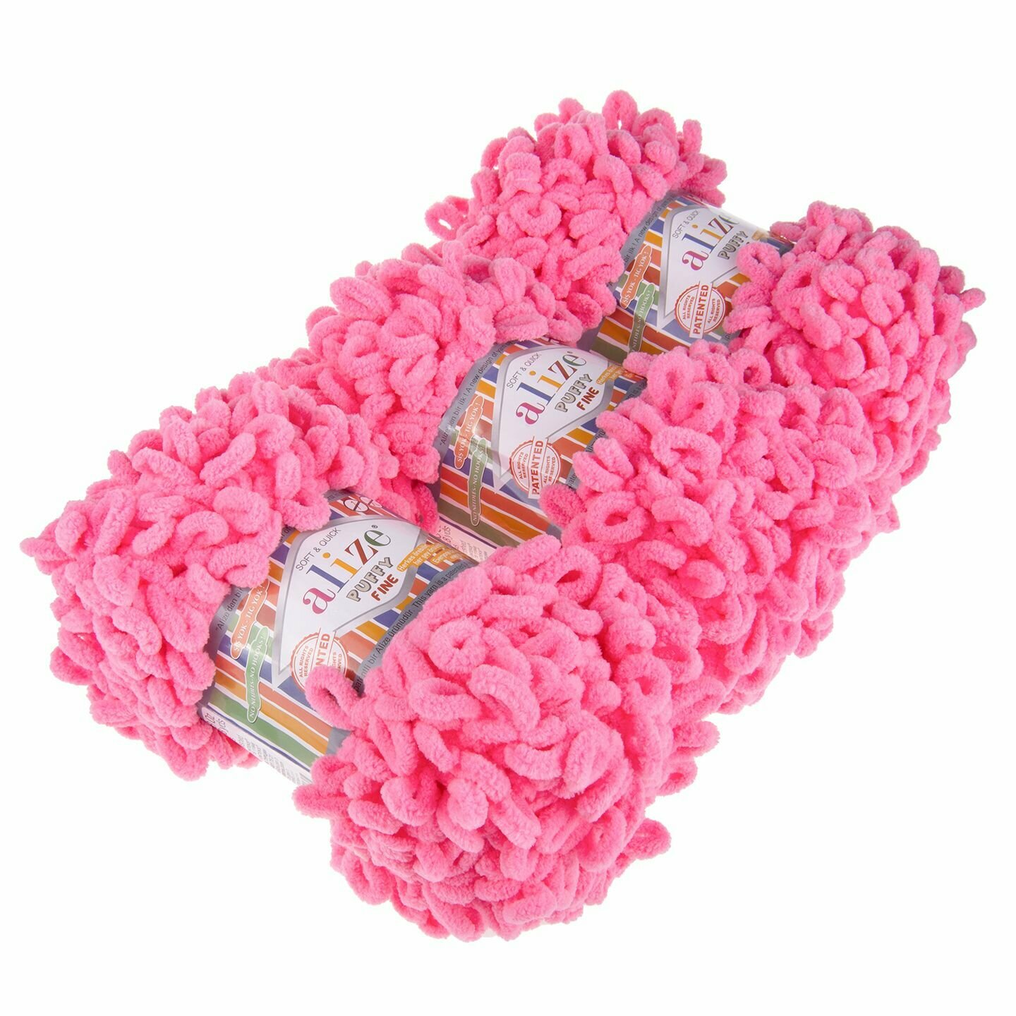 Купить Пряжа Alize Puffy fine ярко-розовый (121), 100%микрополиэстер, 14.5м, 100г, 3шт