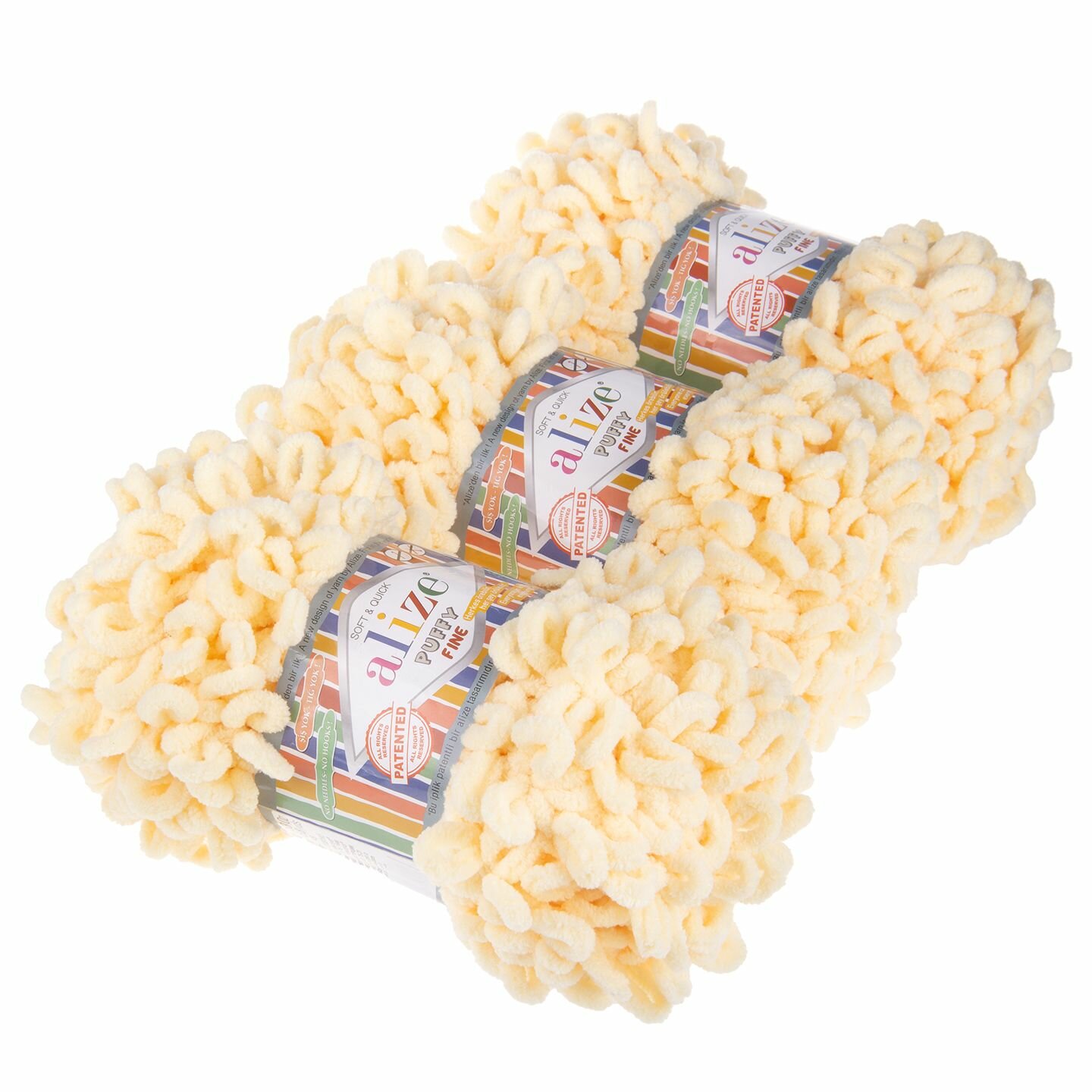 Пряжа для вязания руками с готовыми петлями ALIZE 'Puffy Fine' 100г, 14,5м (599 слоновая кость), 5 мотков
