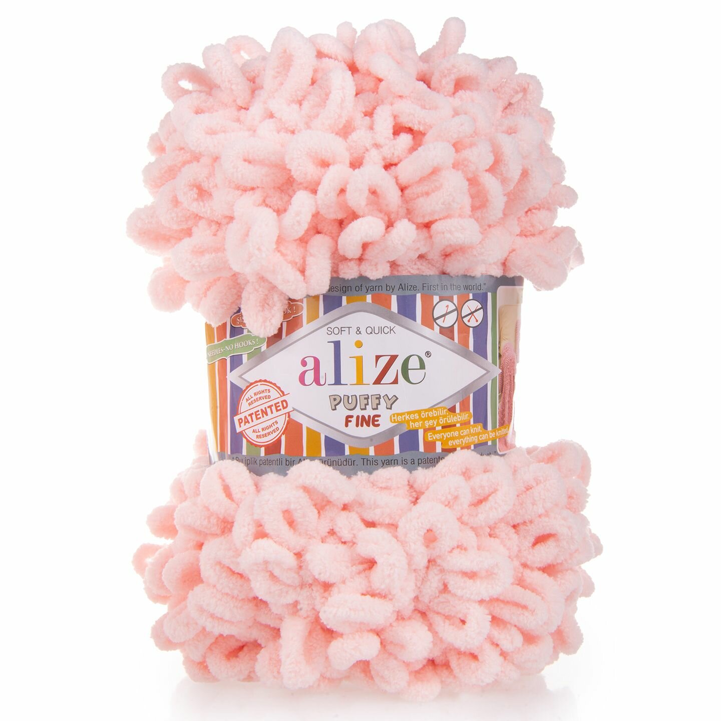 Пряжа для вязания руками с готовыми петлями ALIZE 'Puffy Fine' 100г, 14,5м (340 светло-розовый), 5 мотков