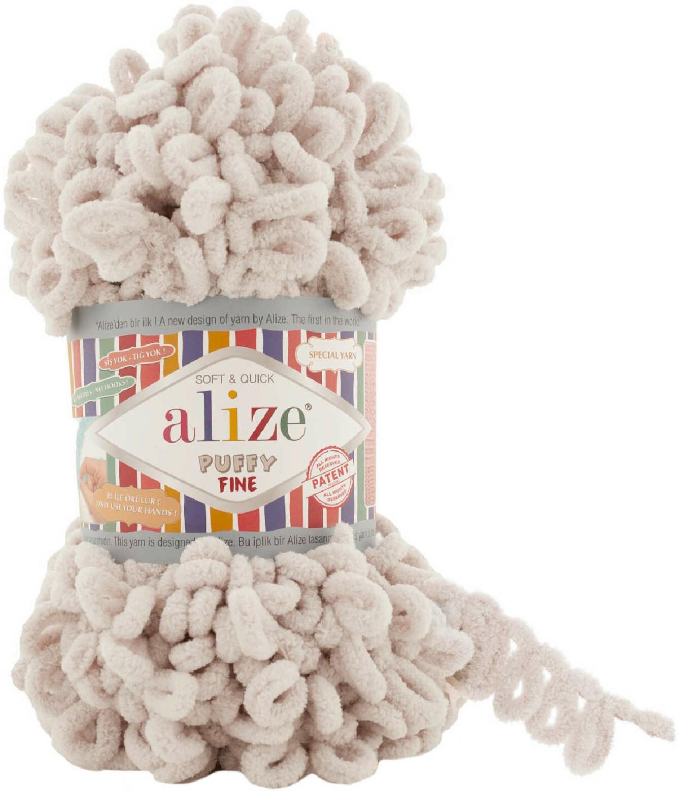 Пряжа Alize Puffy fine песочный (415), 100%микрополиэстер, 14.5м, 100г, 5шт