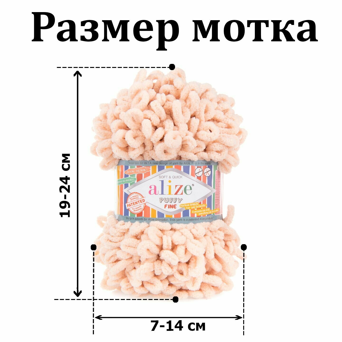 Пряжа плюшевая Alize Puffy Fine (Пуффи Файн) - 5 мотков 310 шампань, для вязания рукми, маленькие петельки (2см), 100г 14м