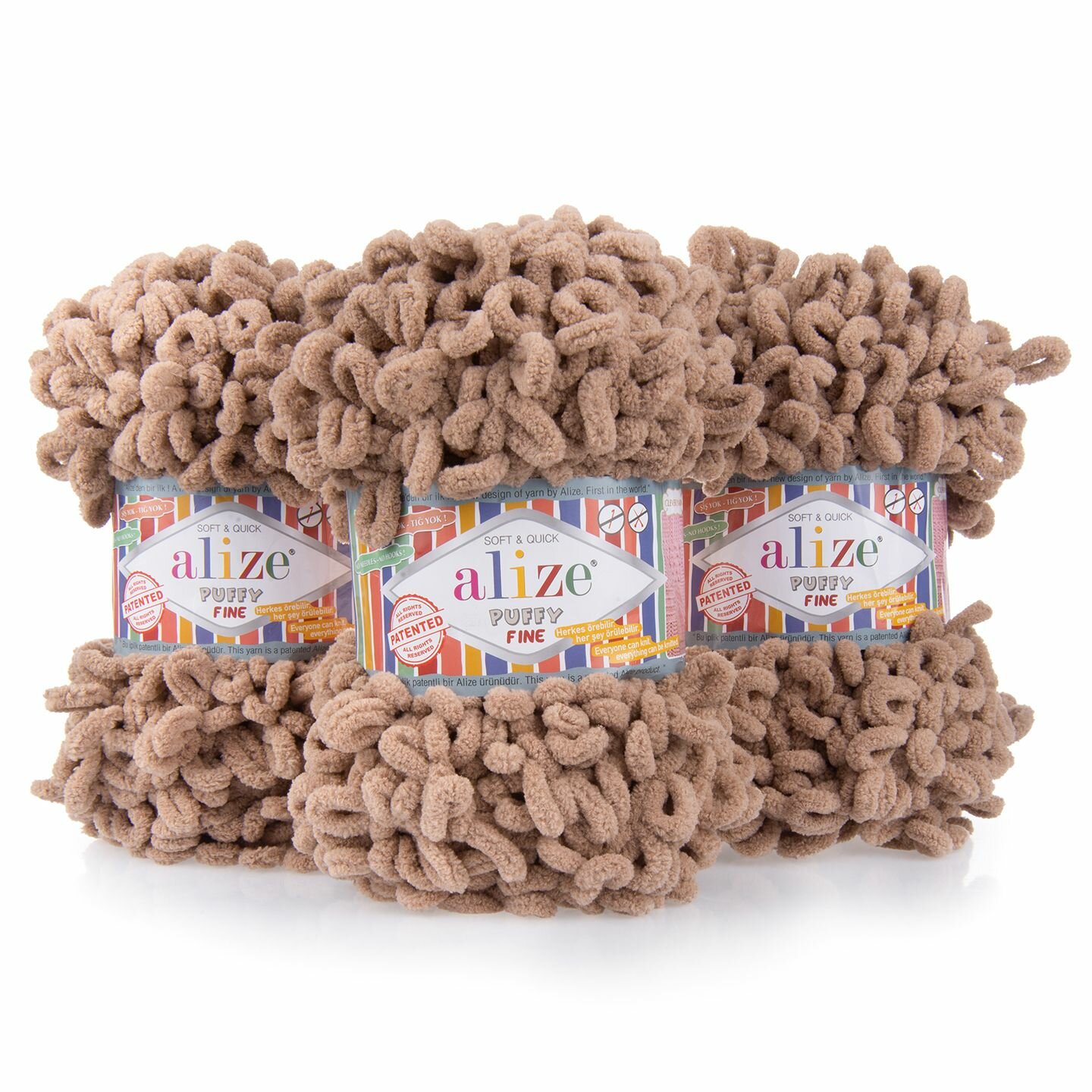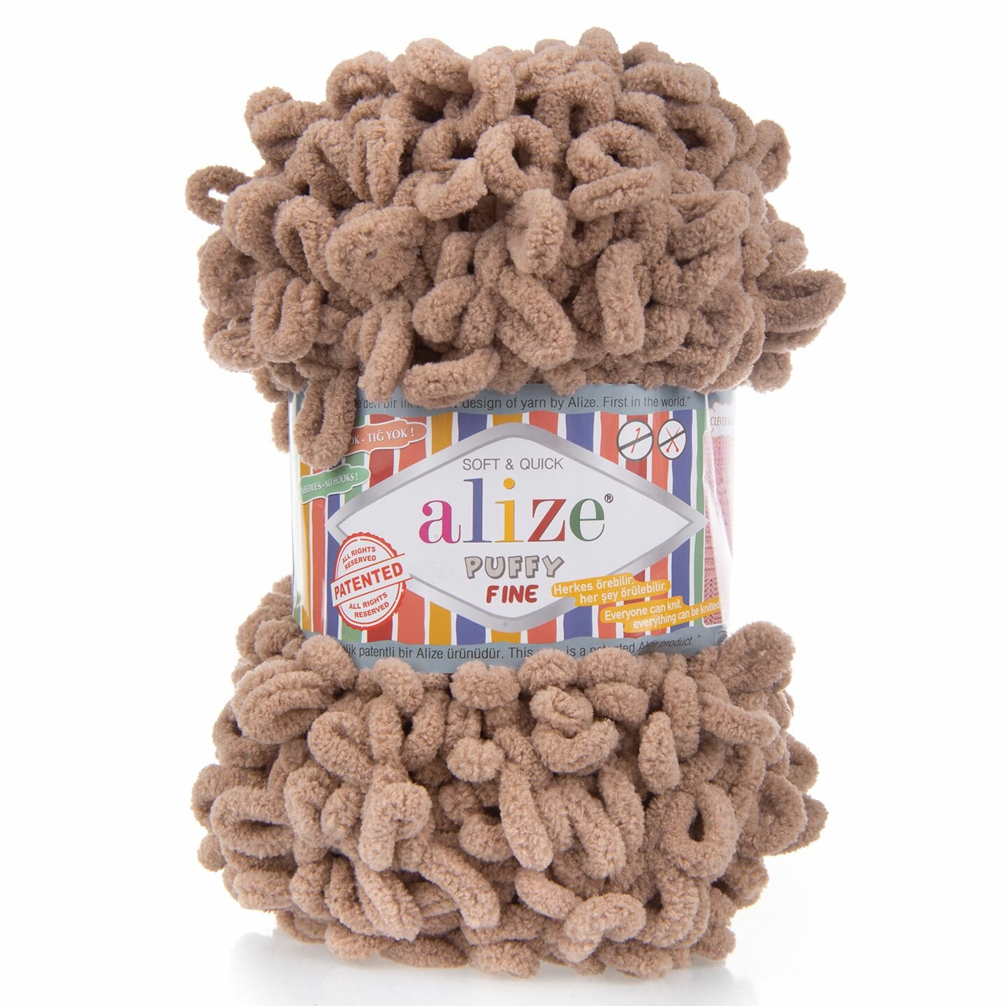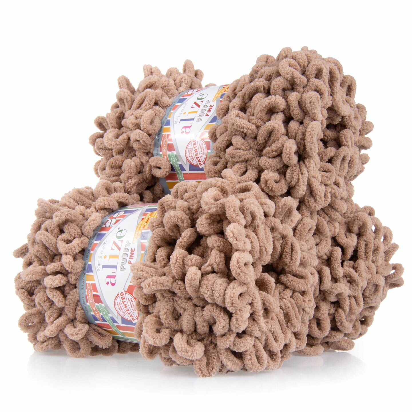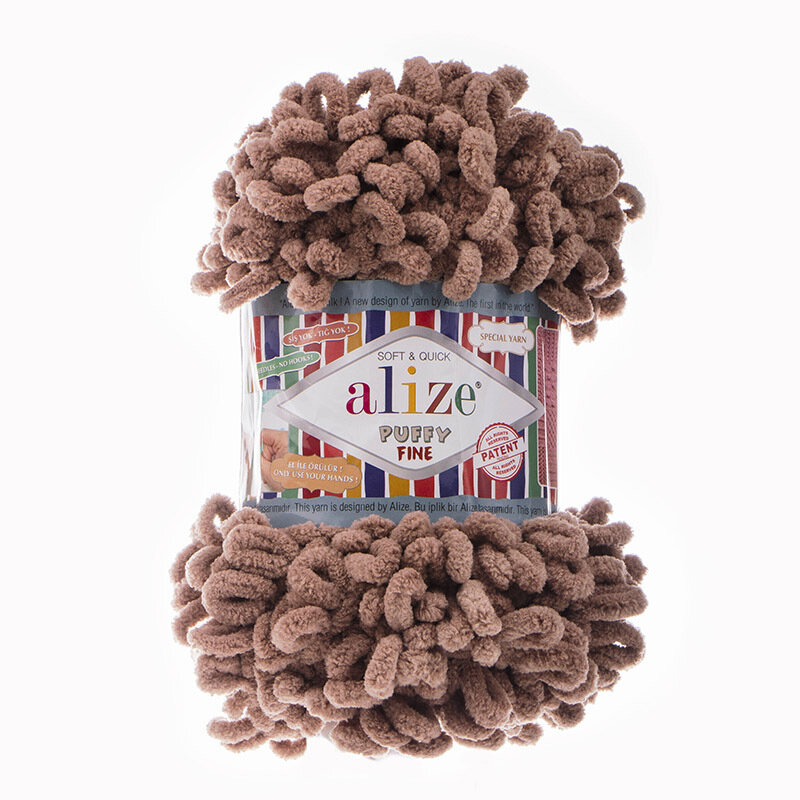 Пряжа для вязания руками с готовыми петлями ALIZE 'Puffy Fine' 100г, 14,5м (261 светло-коричневый), 5 мотков