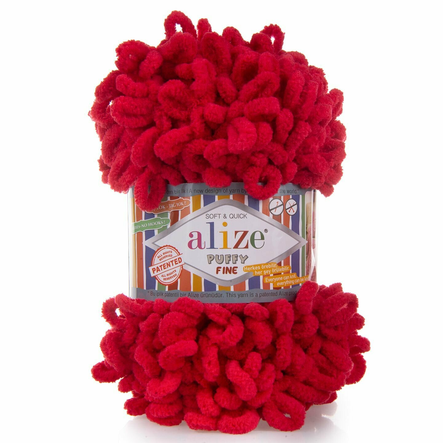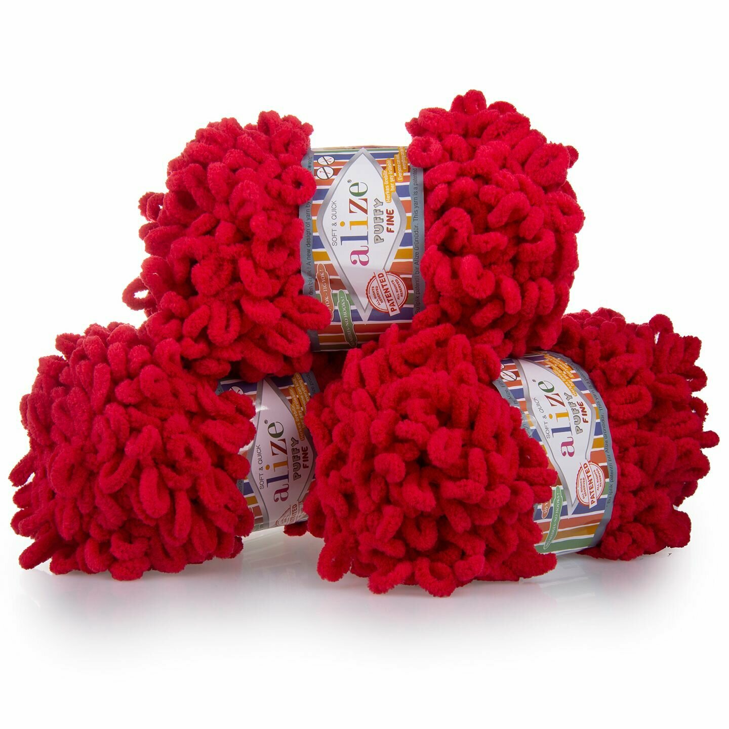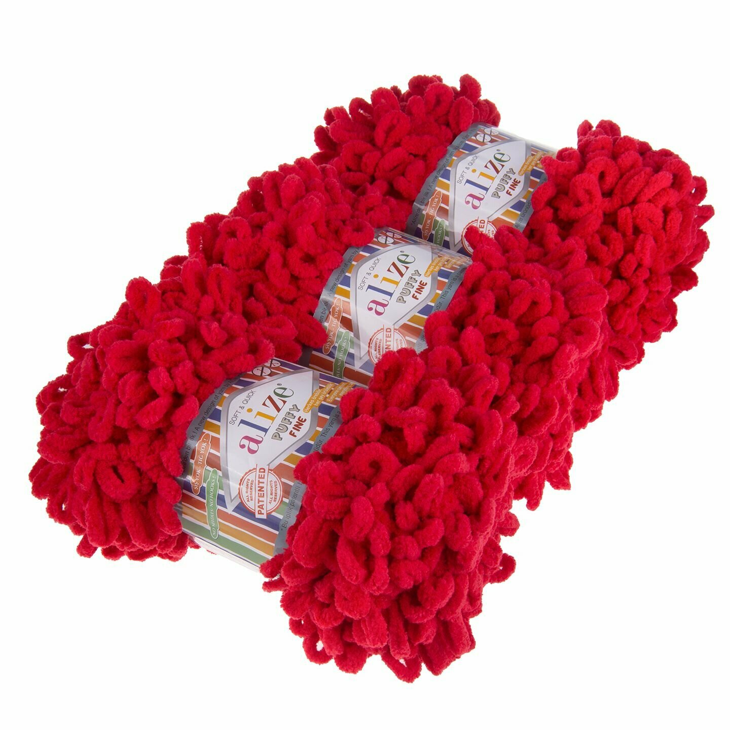 Купить Пряжа Alize Puffy fine красный (56), 100%микрополиэстер, 14.5м, 100г, 3шт