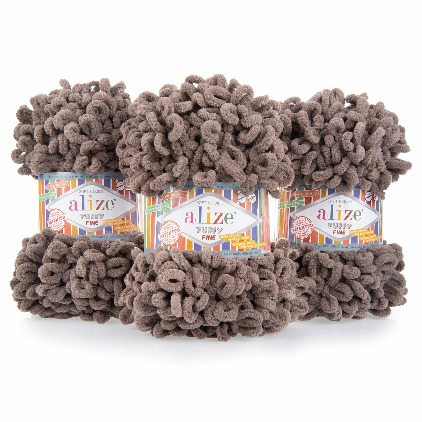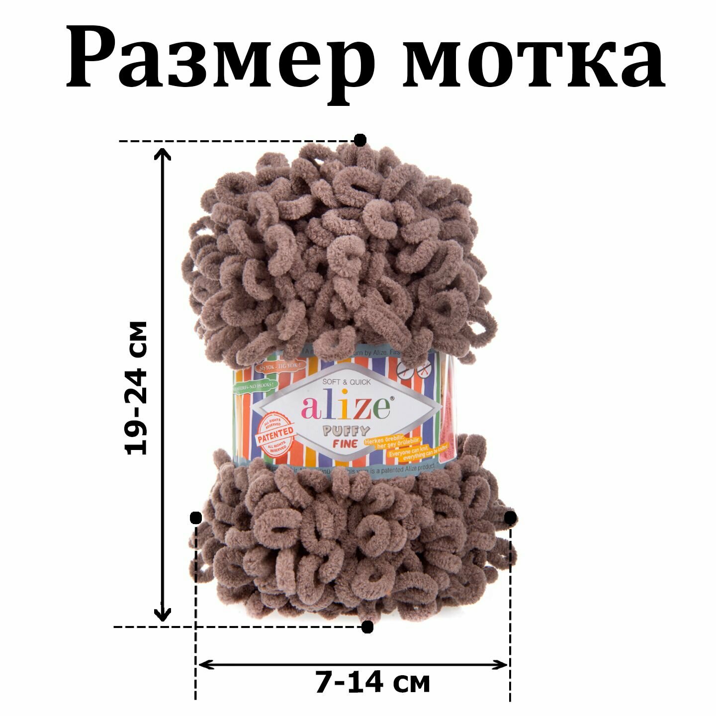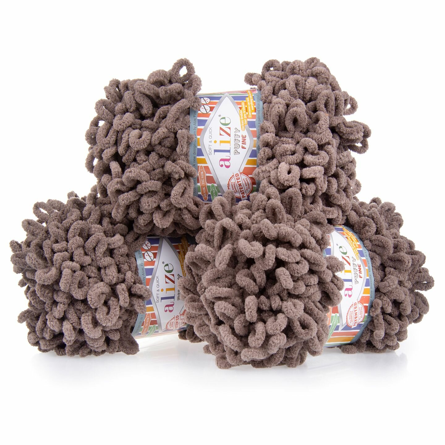 Пряжа плюшевая Alize Puffy Fine (Пуффи Файн) - 5 мотков 305 кофе, для вязания рукми, маленькие петельки (2см), 100г 14м