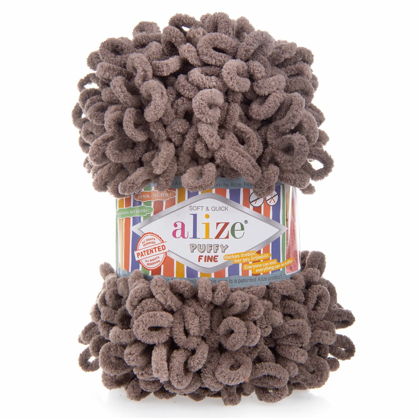 Пряжа для вязания руками с готовыми петлями ALIZE 'Puffy Fine' 100г, 14,5м (261 светло-коричневый), 5 мотков