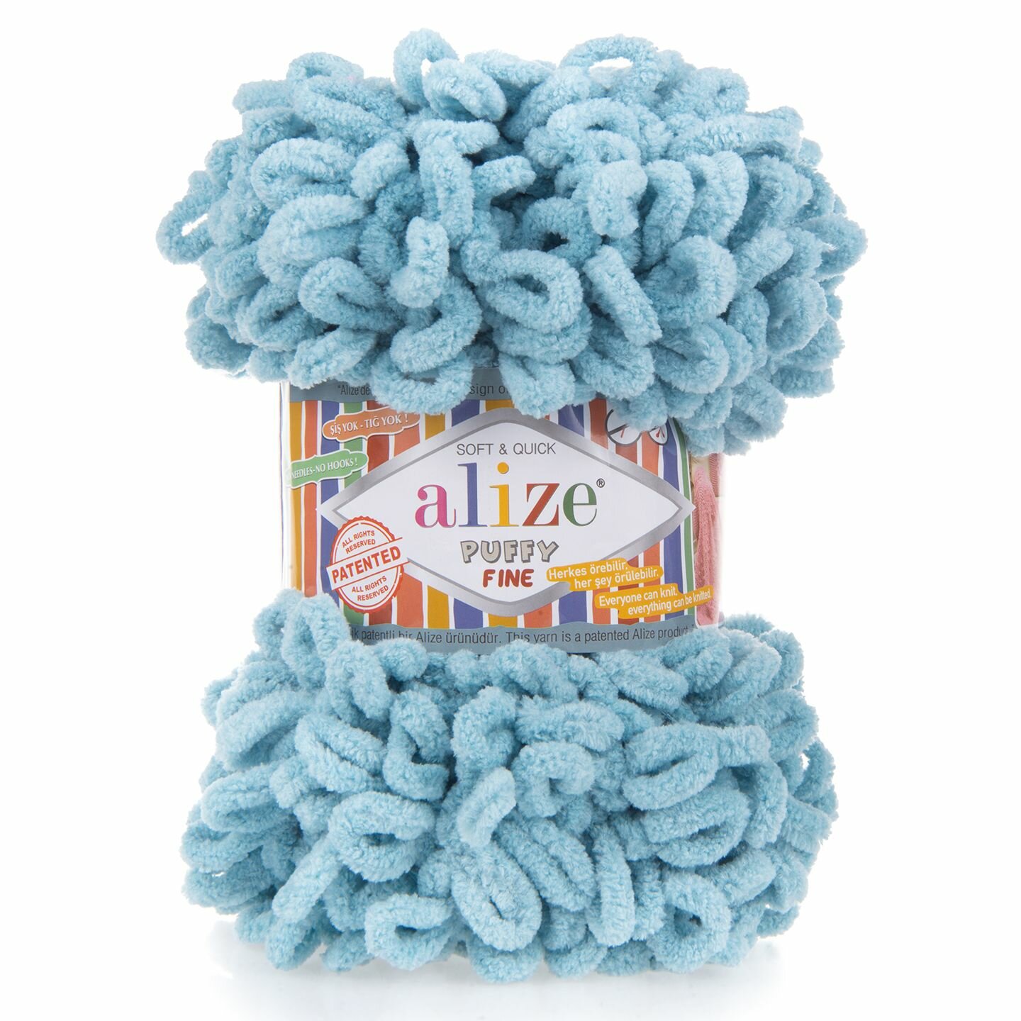 Пряжа для вязания руками с готовыми петлями ALIZE 'Puffy Fine' 100г, 14,5м (112 голубой), 5 мотков