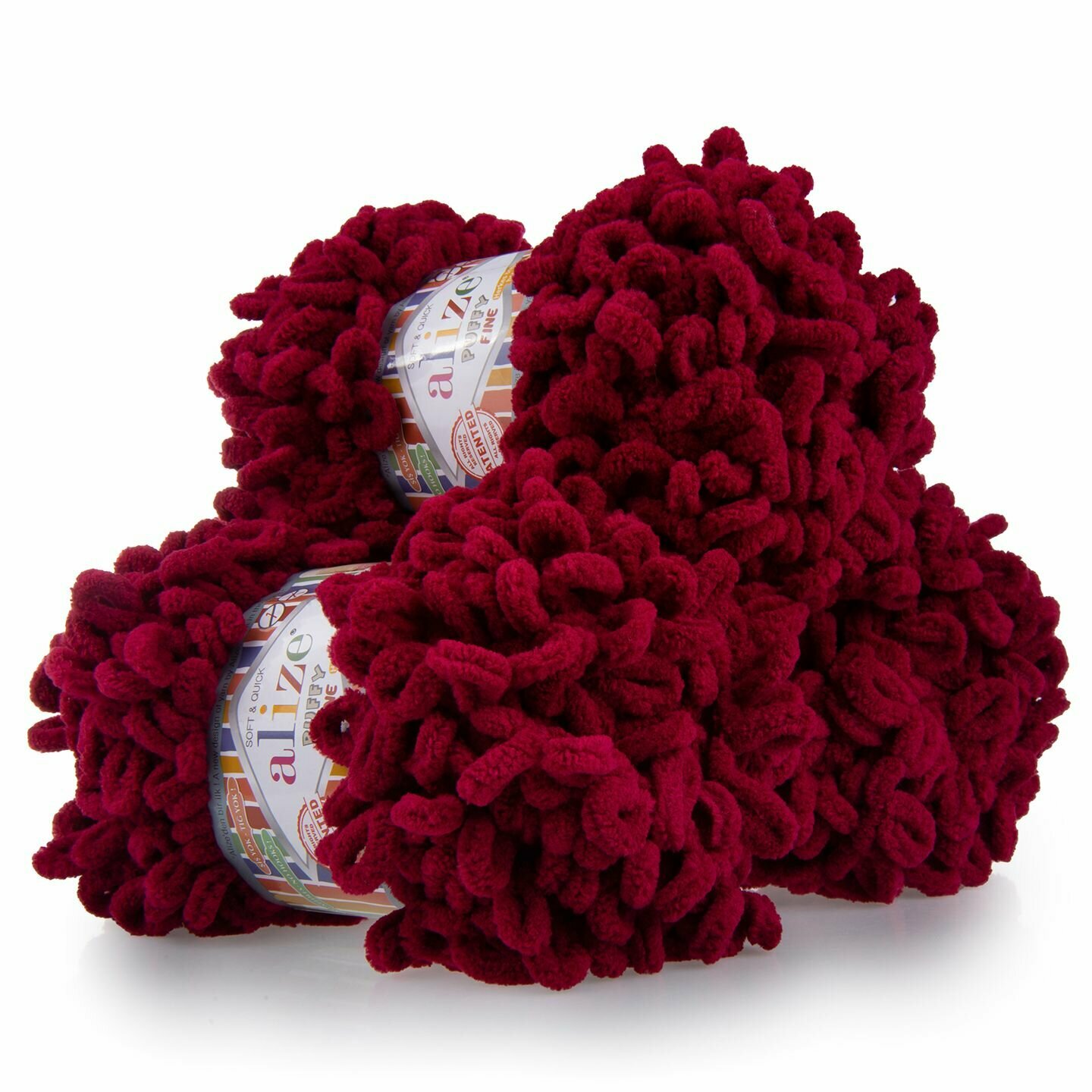 Пряжа для вязания руками с готовыми петлями ALIZE 'Puffy Fine' 100г, 14,5м (107 вишня), 5 мотков