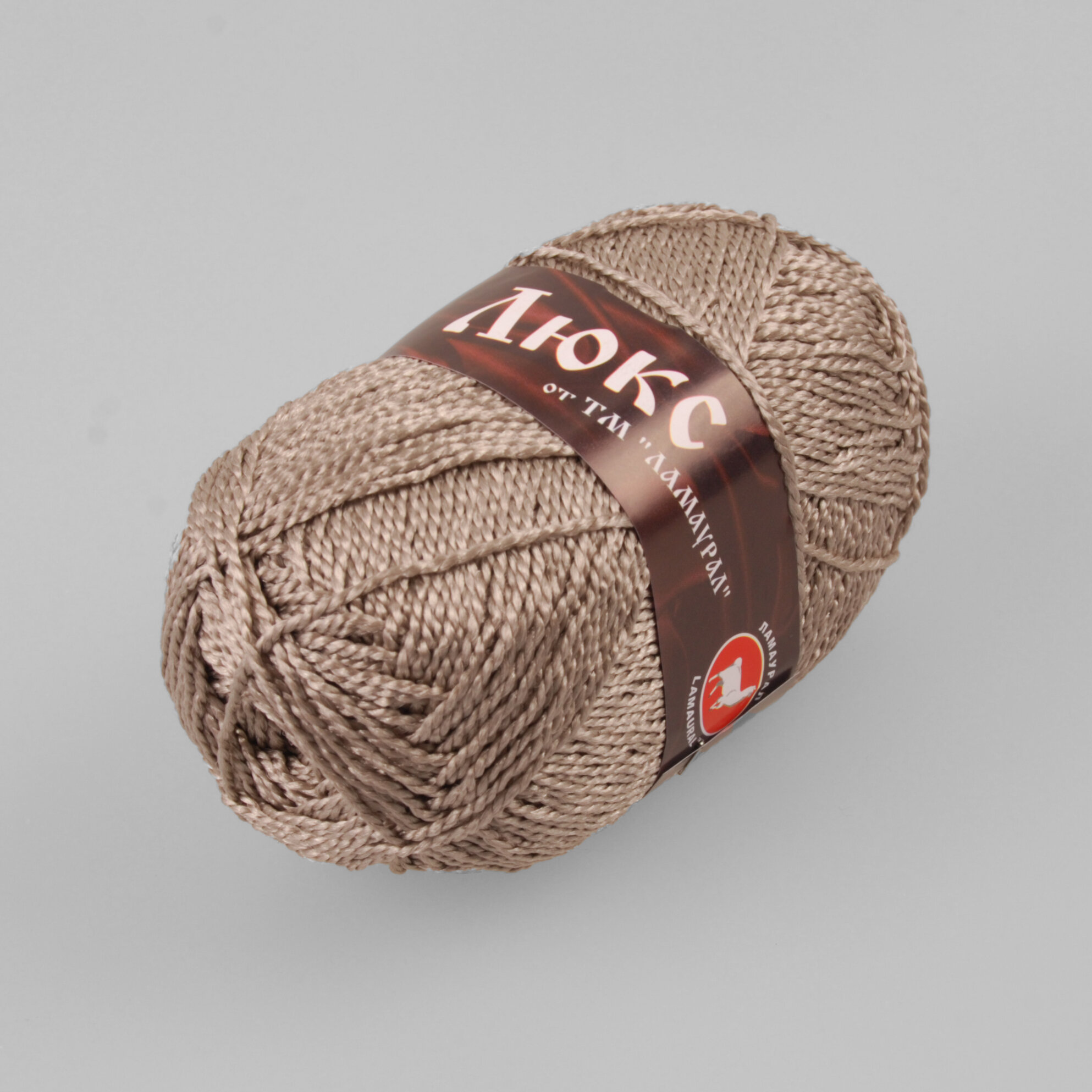 Пряжа Хозяюшка-рукодельница Люкс, 50 г/140м, дуэт №15 5+5 шт орех/бело-золотой + крючок №3.5