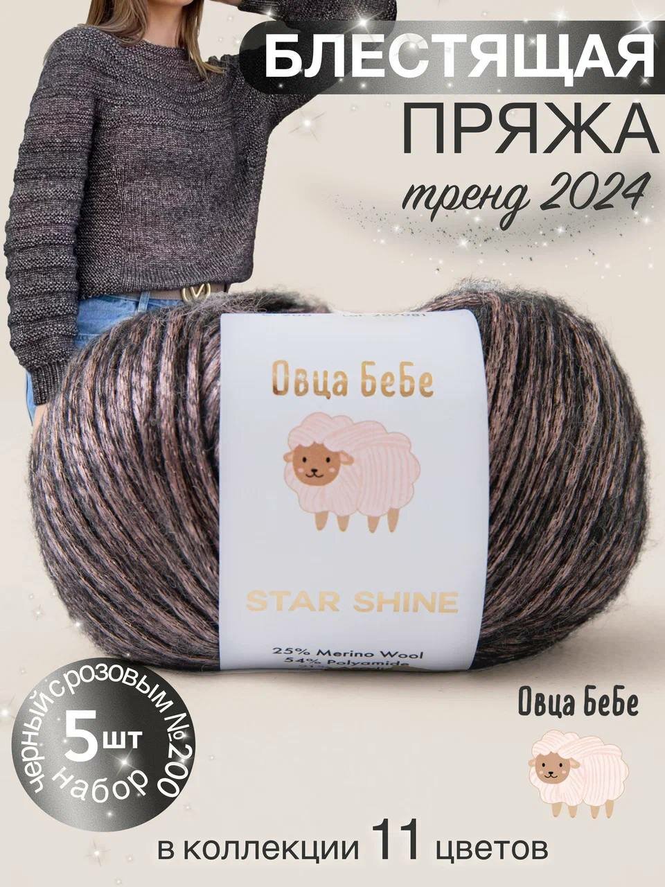 Пряжа для вязания Star Shine премиум с эффектом люрекса, блестящая, цвет черный (набор из 5 шт.)