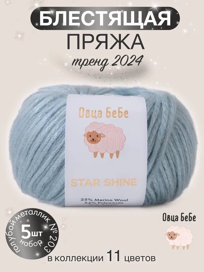 Ниже Вы можете прочитать отзывы на Пряжа для вязания Star Shine премиум с эффектом люрекса, блестящая, цвет голубой металлик (набор из 5 шт.), ознакомится с подробными характеристиками, посмотреть интересные обзоры и фотографии на Пряжа для вязания Star Shine премиум с эффектом люрекса, блестящая, цвет голубой металлик (набор из 5 шт.).