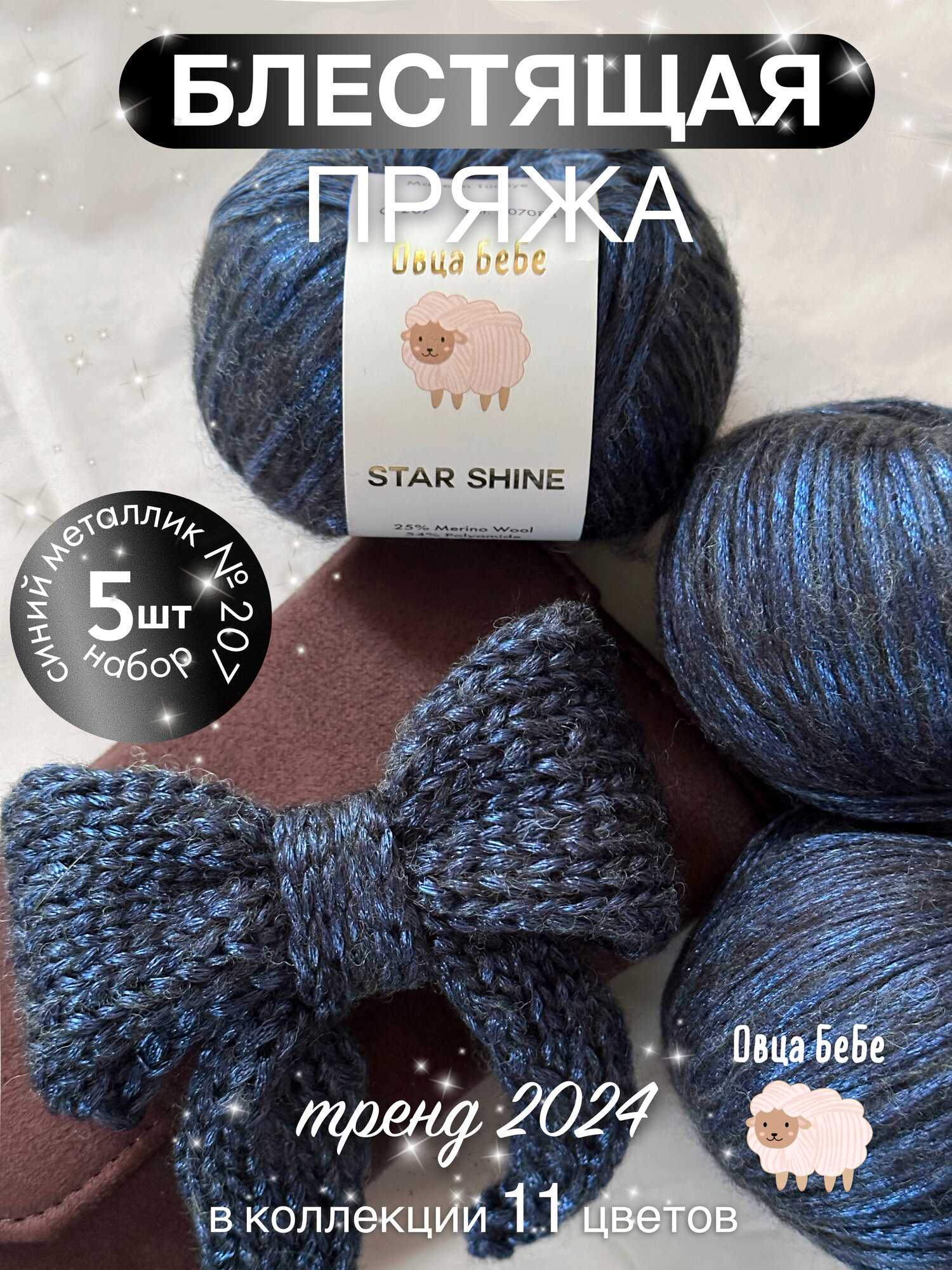 Ниже Вы можете прочитать отзывы на Пряжа для вязания Star Shine премиум с эффектом люрекса, блестящая, цвет синий металлик (набор из 5 шт.), ознакомится с подробными характеристиками, посмотреть интересные обзоры и фотографии на Пряжа для вязания Star Shine премиум с эффектом люрекса, блестящая, цвет синий металлик (набор из 5 шт.).