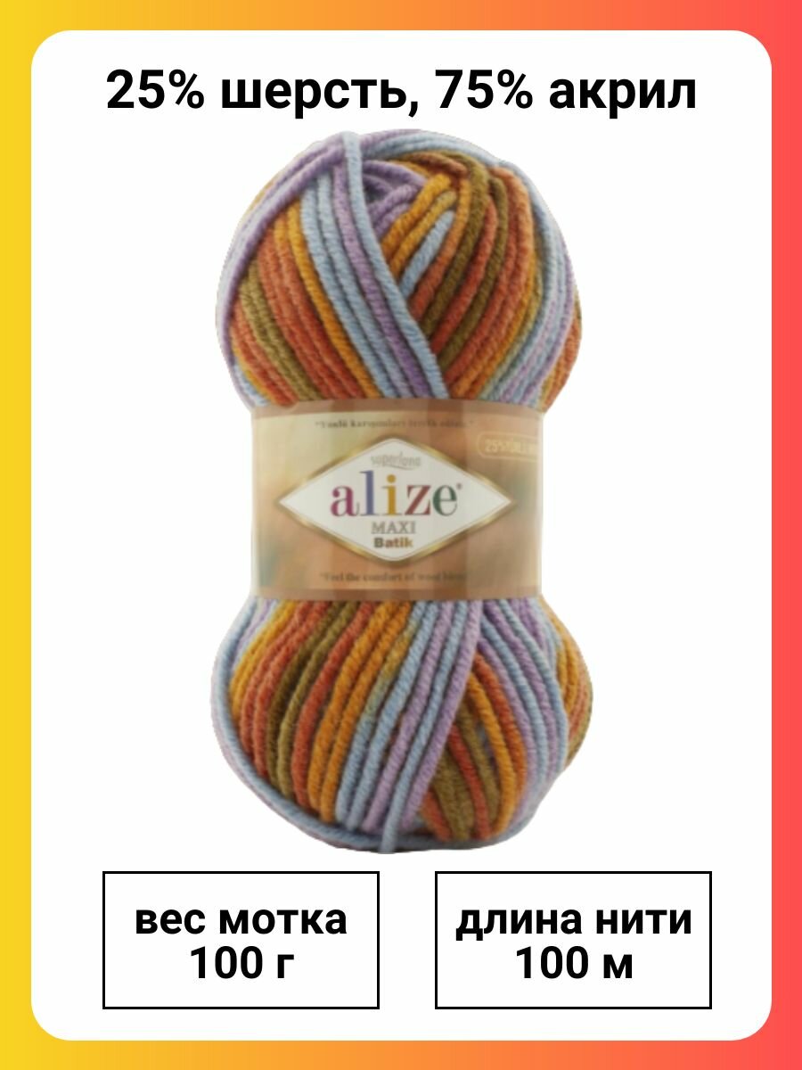 Пряжа Superlana maxi batik, Alize, принт - 7802, 25% шерсть, 75% акрил, 5 мотков, 100 г, 100 м.
