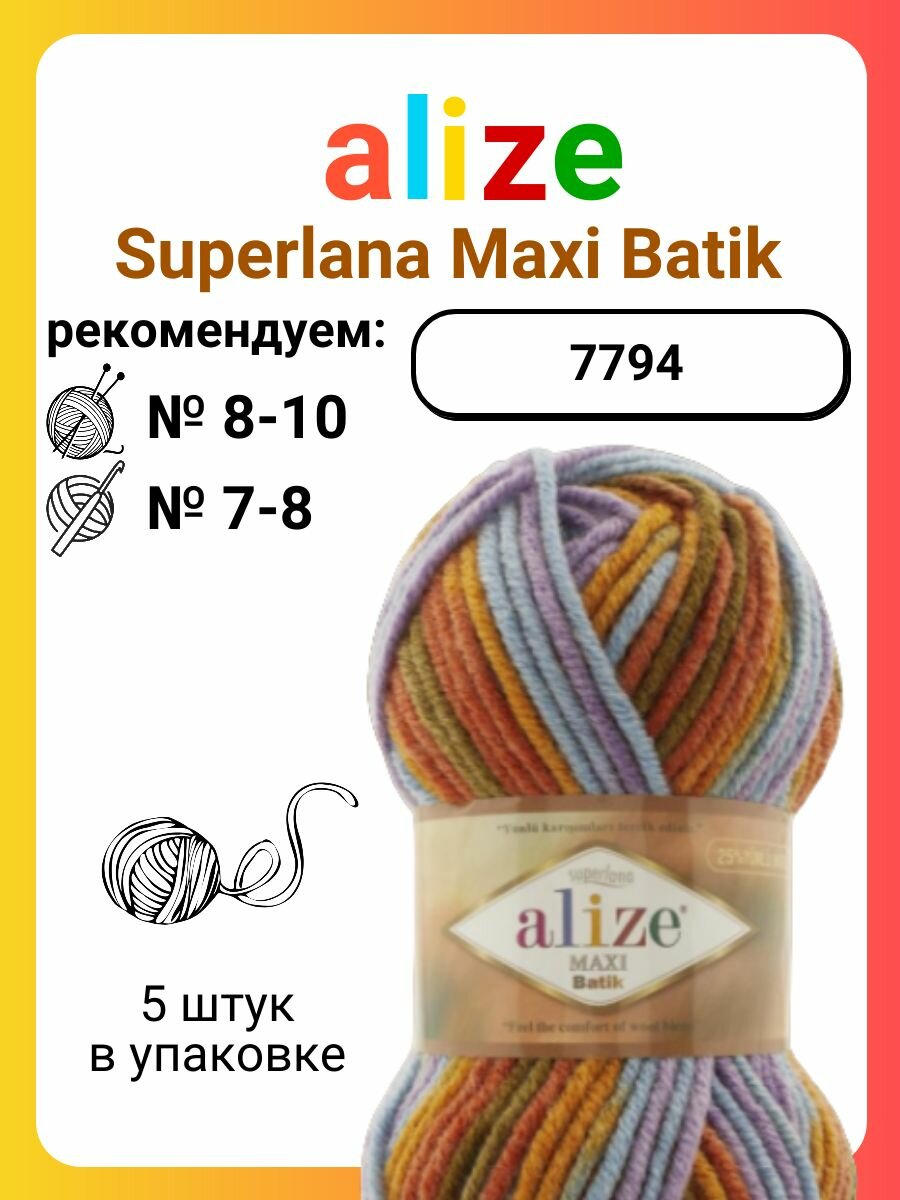 Пряжа Alize Superlana Maxi Batik 7800, 100 г, 100 м, 5 штук