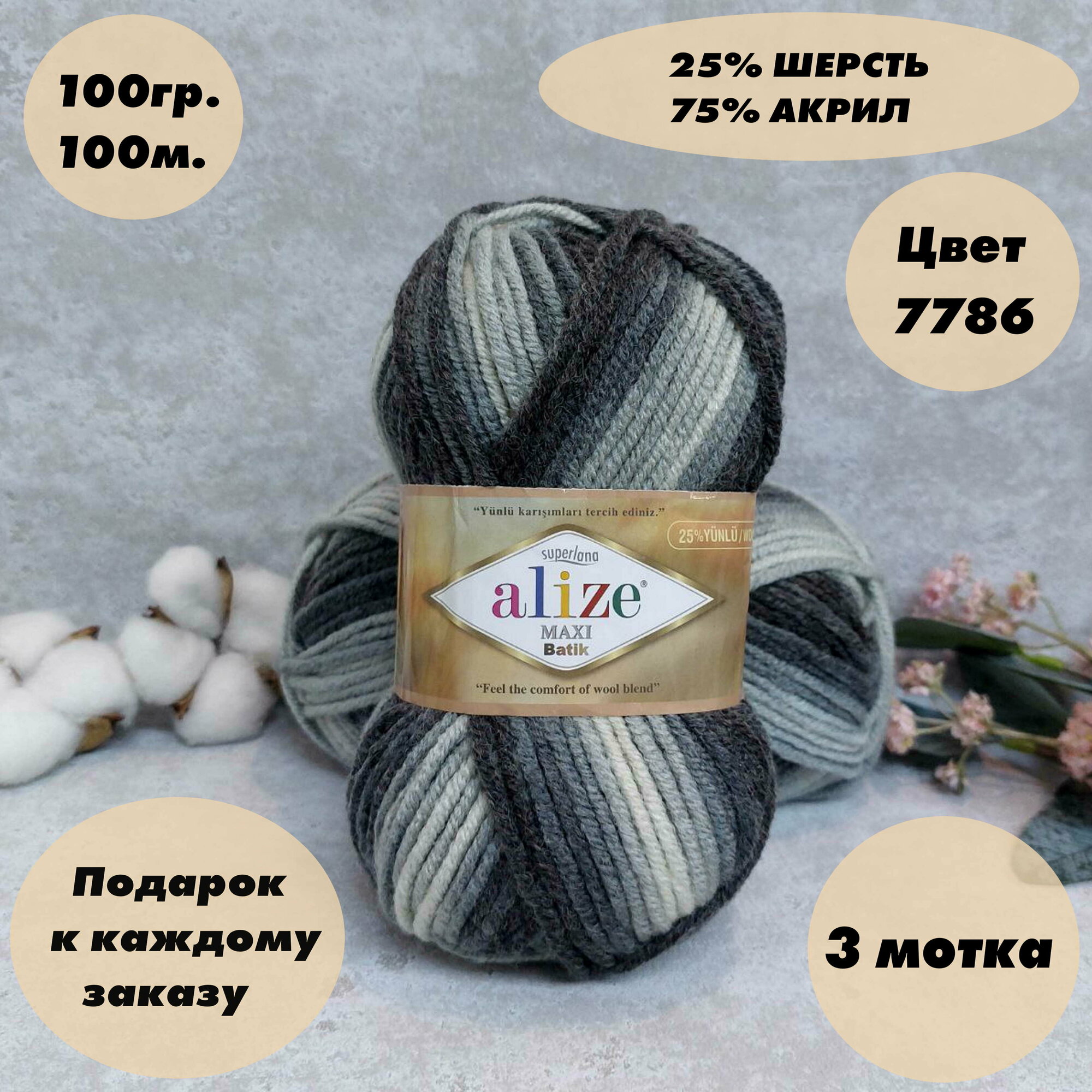 Купить Пряжа Alize Superlana Maxi batik серо-черный (7786), 25%шерсть/75%акрил, 100м, 100г, 3шт