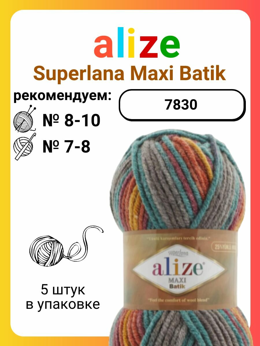 Пряжа Alize Superlana Maxi Batik 7830, 100 г, 100 м, 5 штук