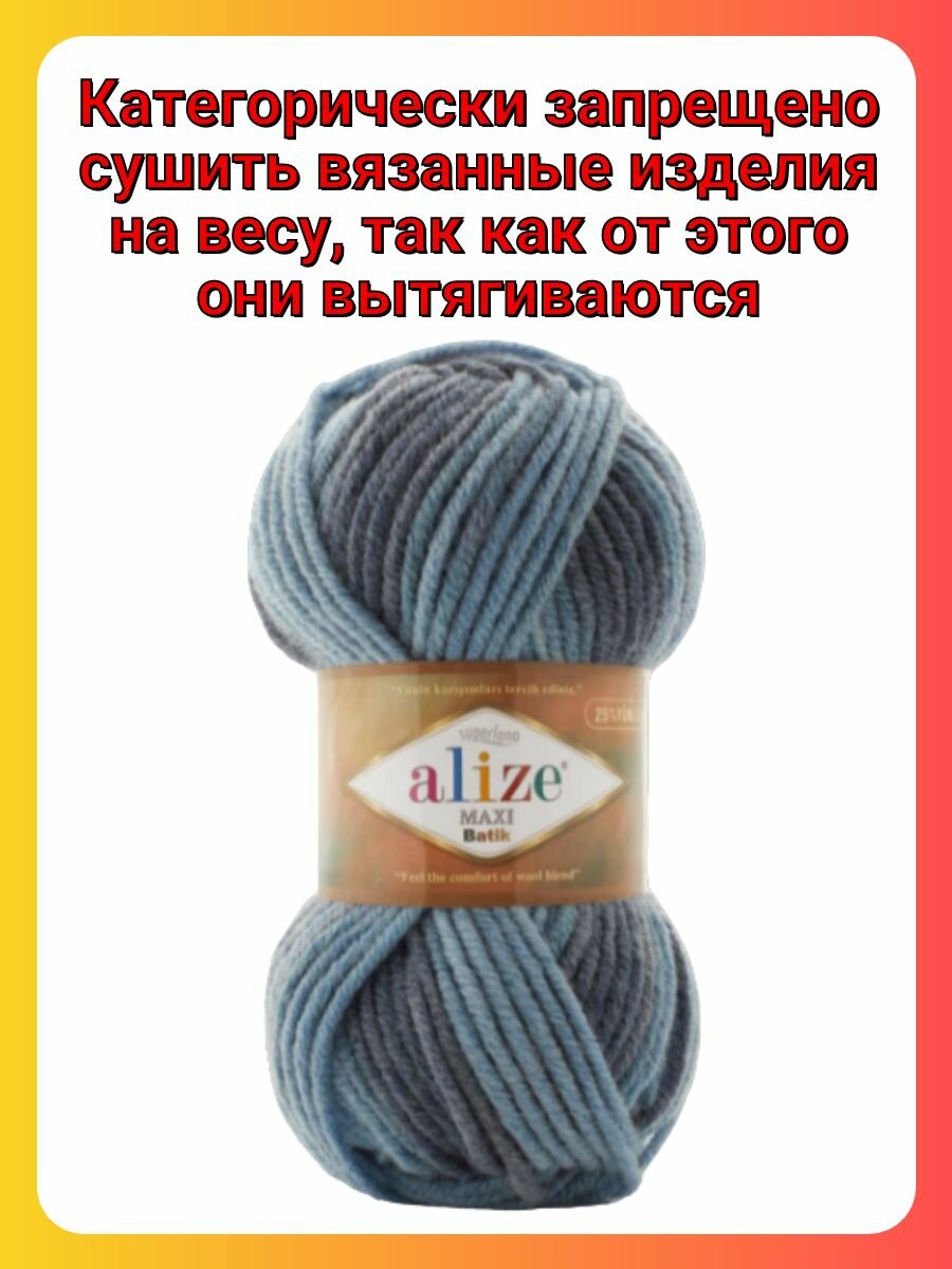 пряжа Суперлана Макси Батик Alize (Superlana Maxi Batik) упаковка 5 мотков 100 гр. 100 м. 25% шерсть 75% акрил цвет 7794