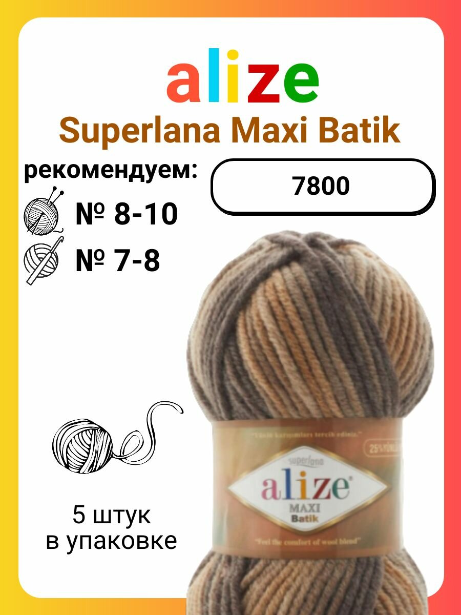 Пряжа Alize Superlana Maxi batik бежево-кофейный (7800), 25%шерсть/75%акрил, 100м, 100г, 5шт
