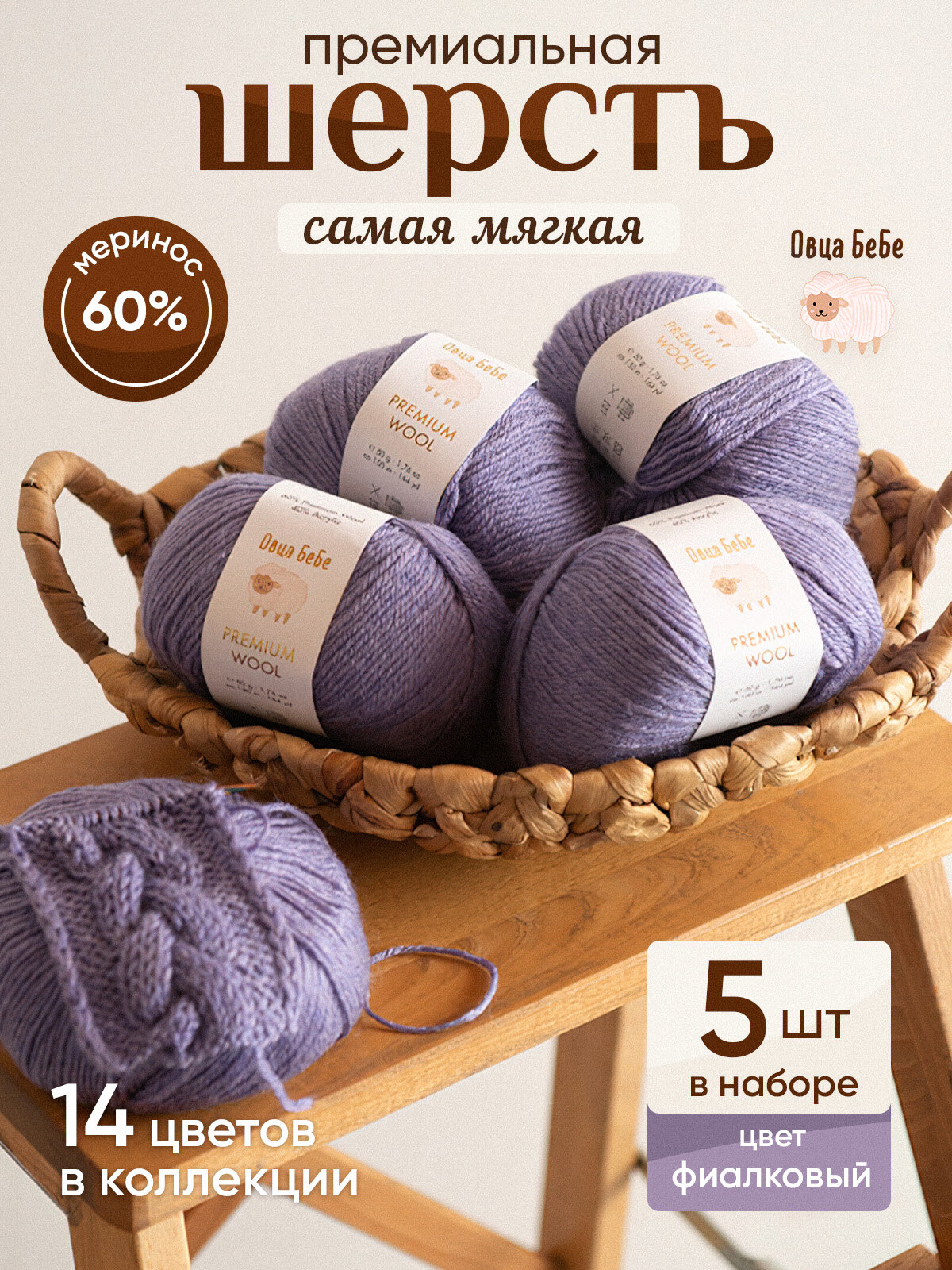 СохранитьПряжа для вязания шерсть Premium Wool - 5 мотков, цвет фиалковый интересное:
