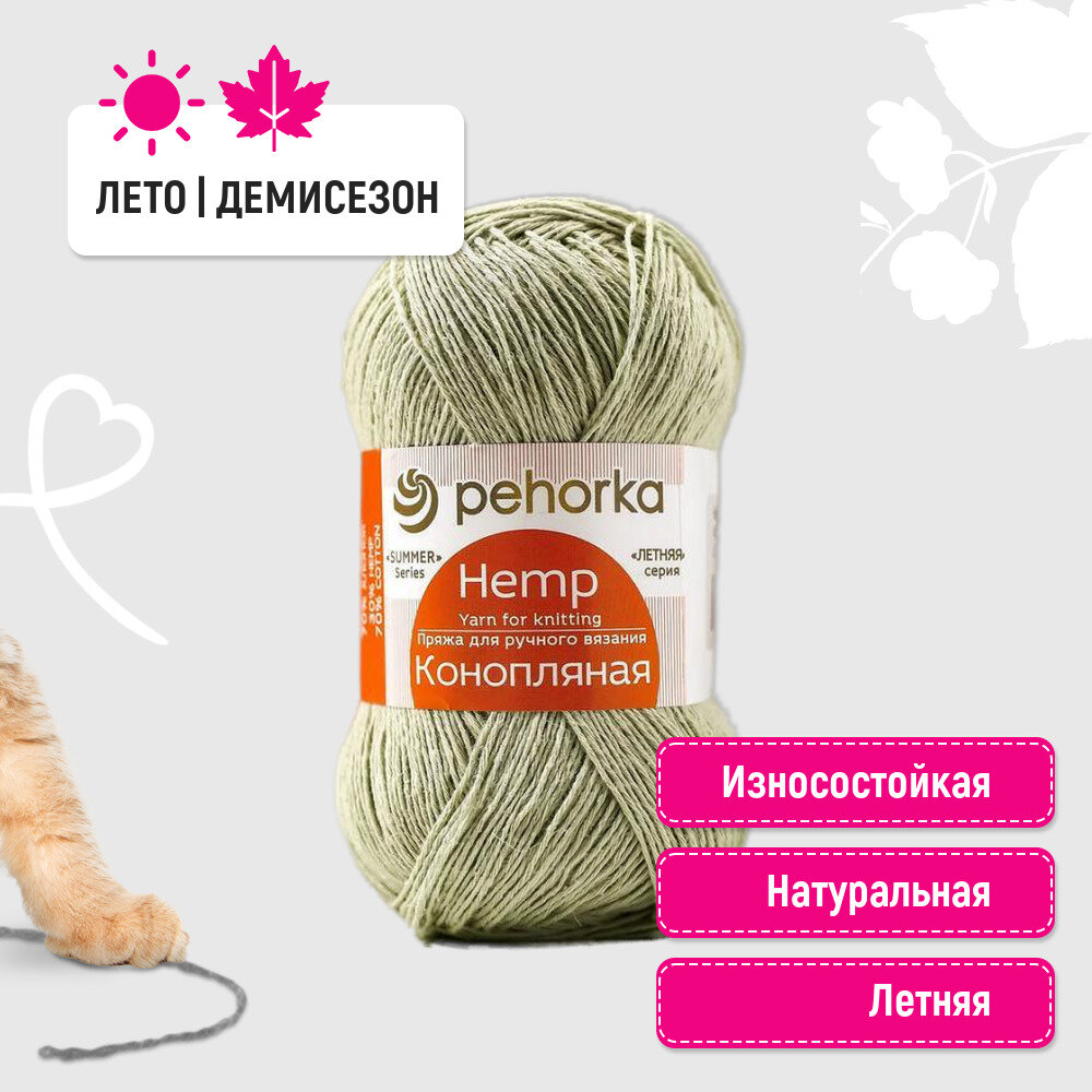 СохранитьПряжа Пехорский текстиль "Hemp", 70% хлопок, 30% конопля, 280+-14 м, №494, цвет Светлый хаки, 5 шт по 50 г интересное:
