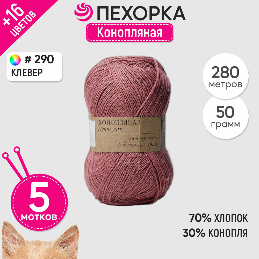 Пряжа для вязания Пехорка 'Конопляная', 50г, 280м (70% хлопок, 30% конопля) (290 клевер), 5 мотков