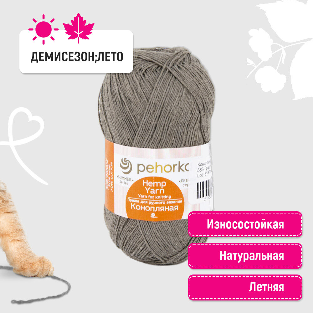 Пряжа Пехорка Конопляная графит (585), 70%хлопок/30%конопля, 280м, 50г, 1шт