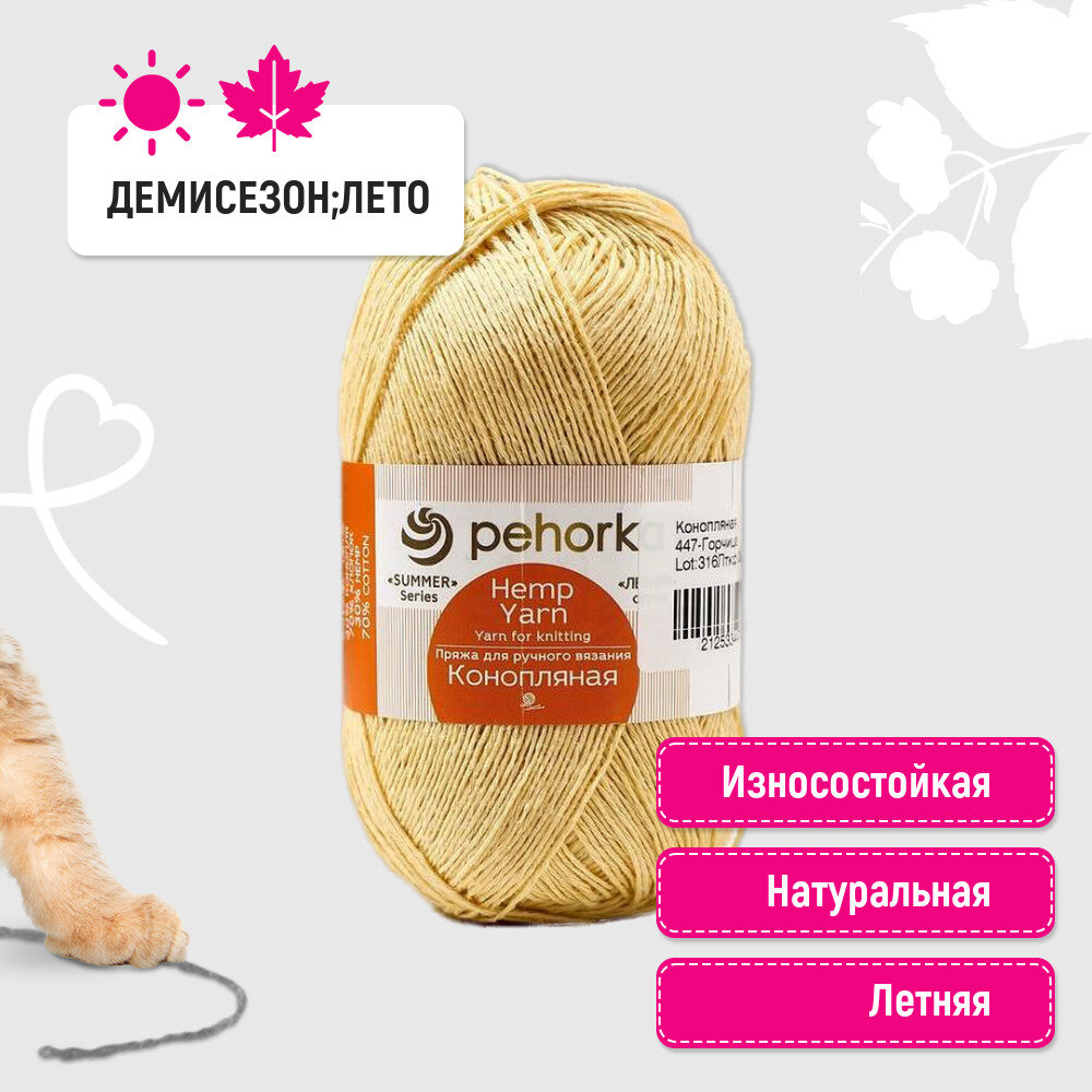 Пряжа Пехорка Конопляная горчица (447), 70%хлопок/30%конопля, 280м, 50г, 1шт