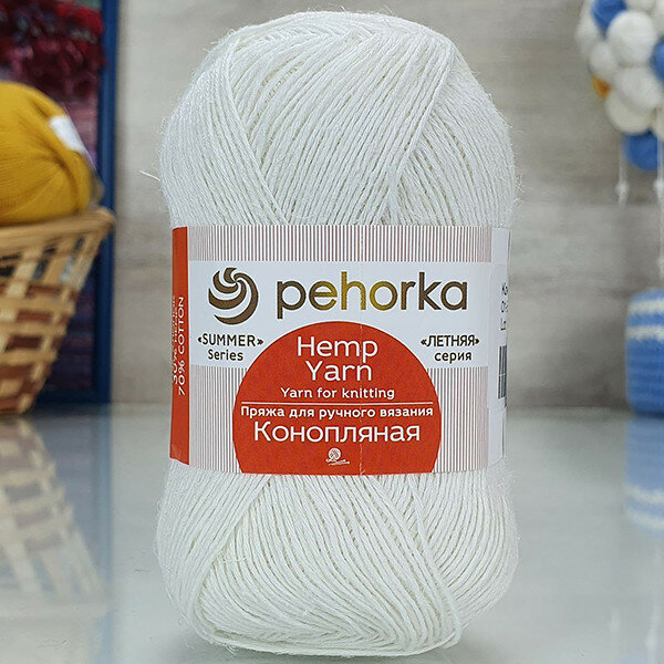 Пряжа Пехорка Конопляная белый (001), 70%хлопок/30%конопля, 280м, 50г, 1шт