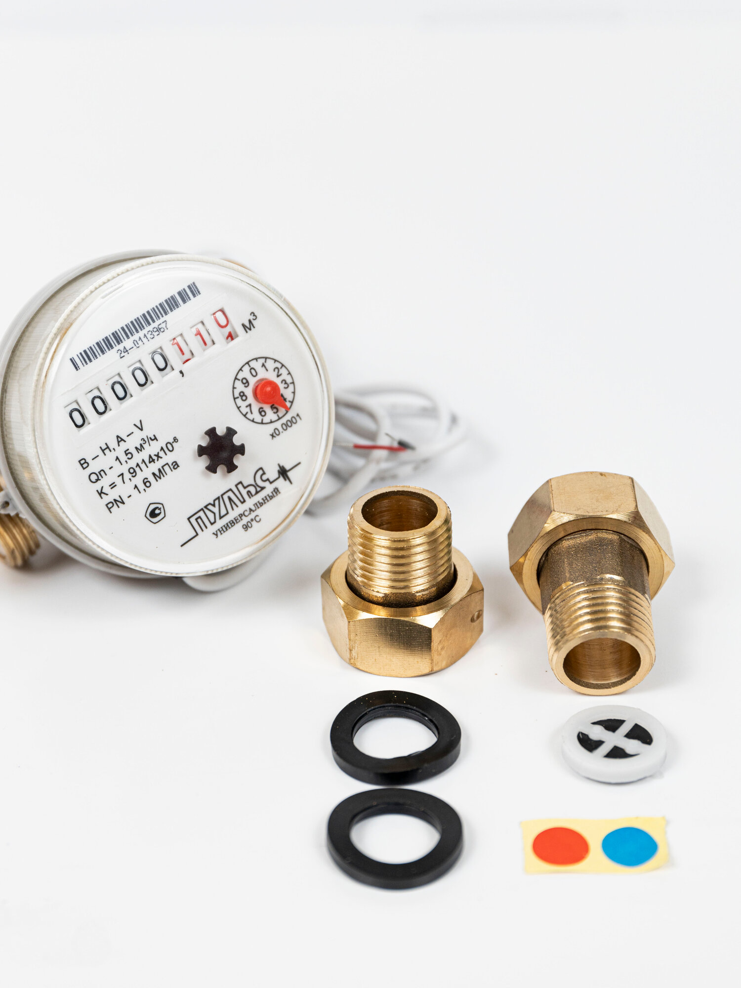 Купить Счетчик воды/водосчетчик Пульс 15УИ-80, Ду15, 80мм, универсальный, для холодной и горячей воды, с монтажным комплектом, импульсный