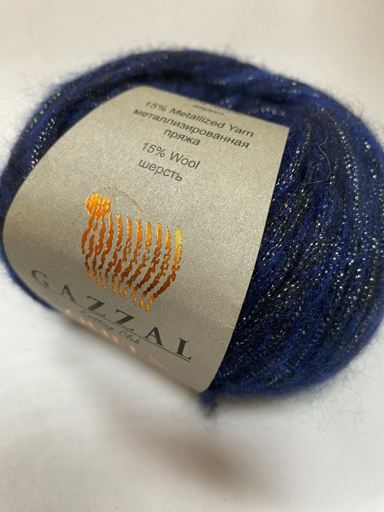 Пряжа Gazzal Queen темно-синий (7339), 15%шерсть/35%полиэстер/15%металлик/35%акрил, 100м, 50г, 2шт