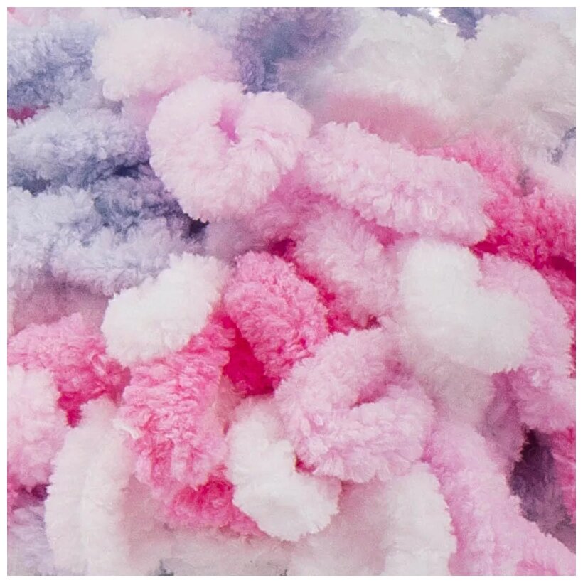 Пряжа Alize Puffy color бело-розово-сиреневый (6051), 100%микрополиэстер, 9м, 100г, 3шт