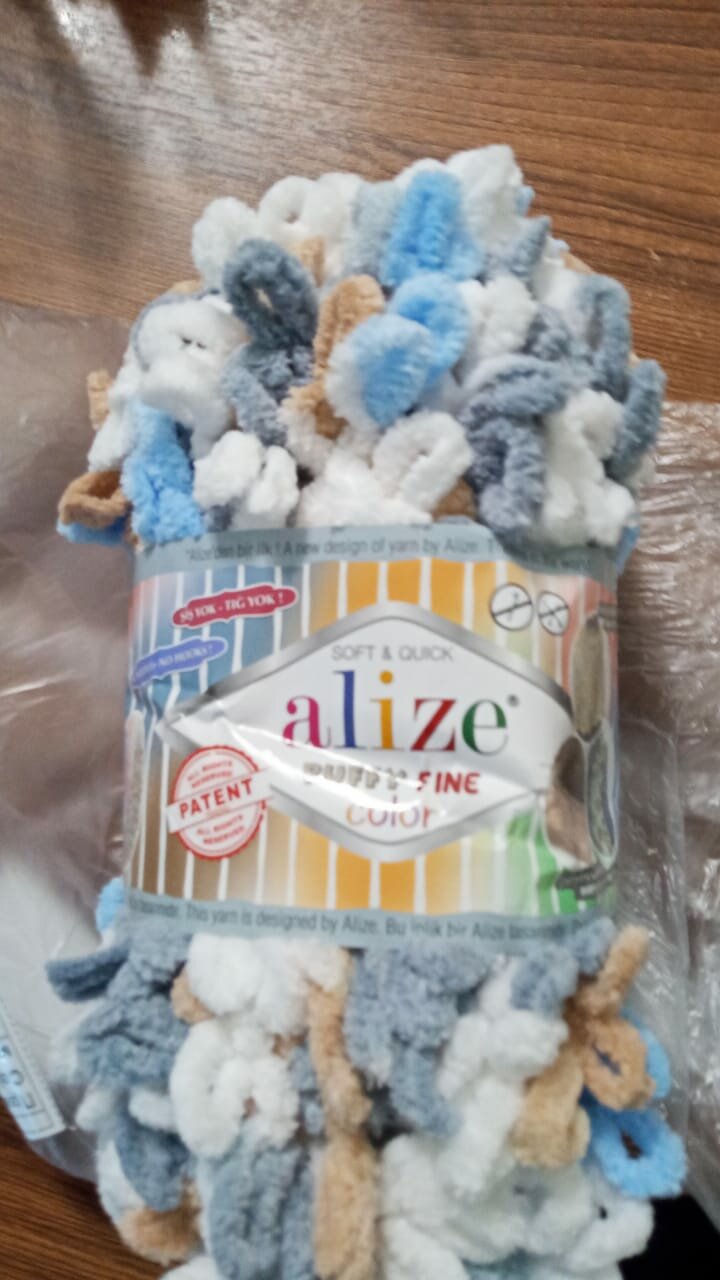 СохранитьПряжа Alize Puffy fine color белый-голубой-серый-бежевый (5946), 100%микрополиэстер, 14.5м, 100г, 1шт интересное: