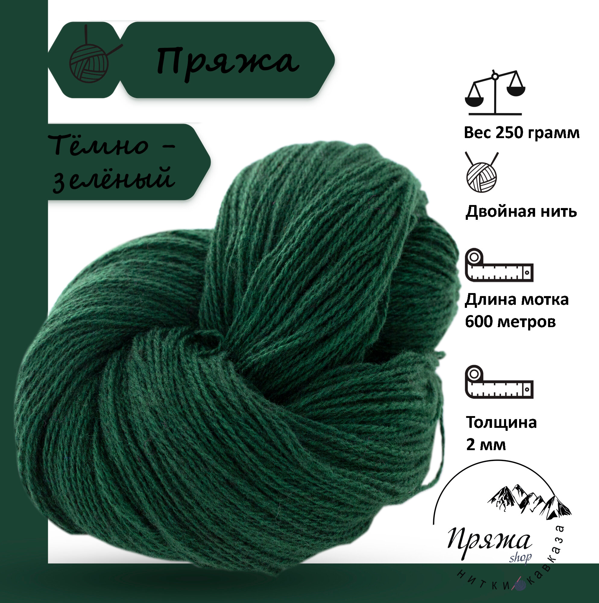 Купить Карачаевская пряжа мягкая в пасмах нитки 100 % акрил для вязания 600-650м/250-280гр, Тёмно - зелёный