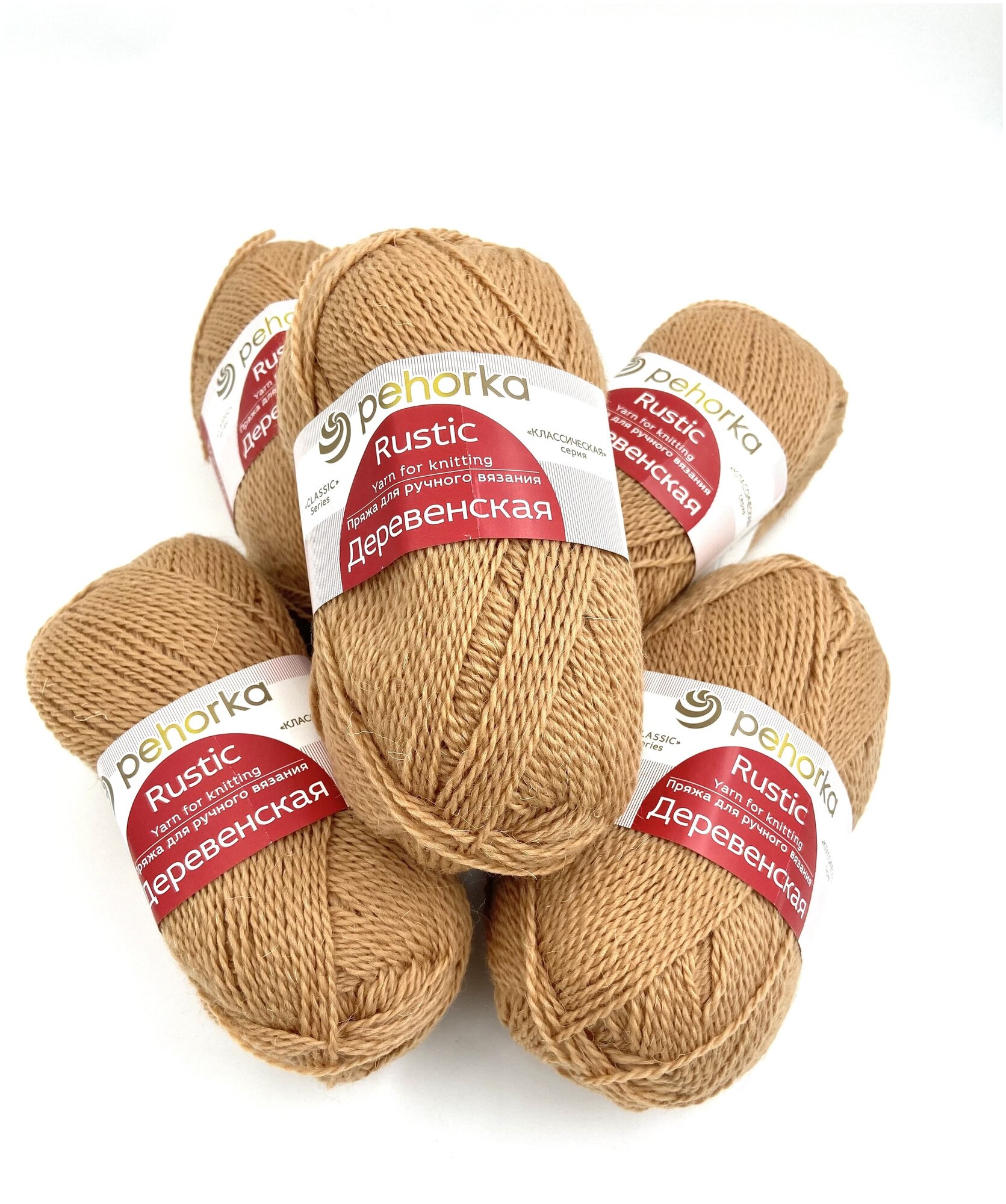 Пряжа для вязания Пехорка 'Деревенская' 100г, 250м (100% шерсть) (412 верблюжий), 10 мотков