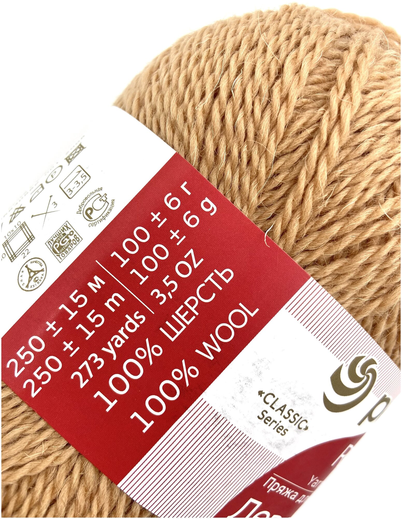 Пряжа для вязания Пехорка 'Деревенская' 100г, 250м (100% шерсть) (125-Камелия), 10 мотков