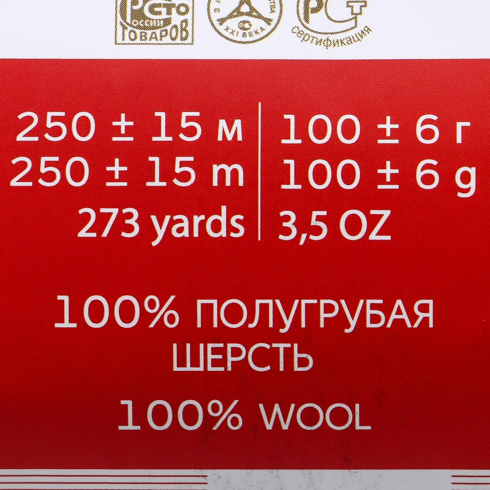 Пряжа для вязания Пехорка 'Деревенская' 100г, 250м (100% шерсть) (88-Красный мак) 10 мотков