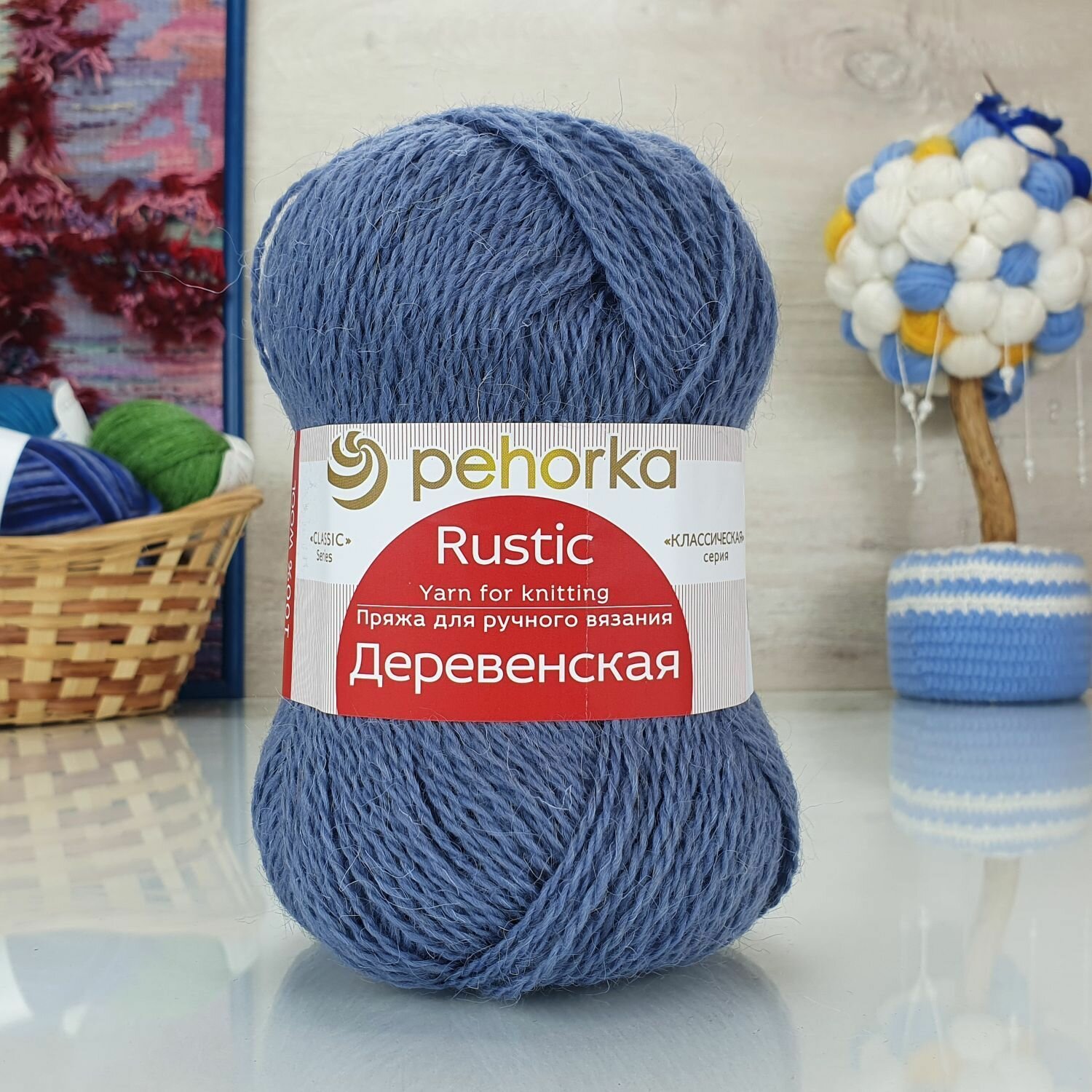 Пряжа Пехорка Деревенская 255 джинсовый (100г/250м, упаковка 5 мотков)